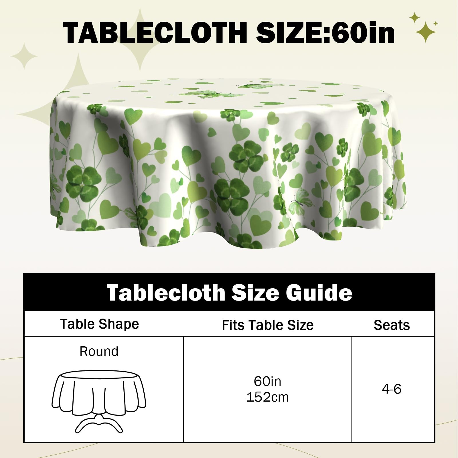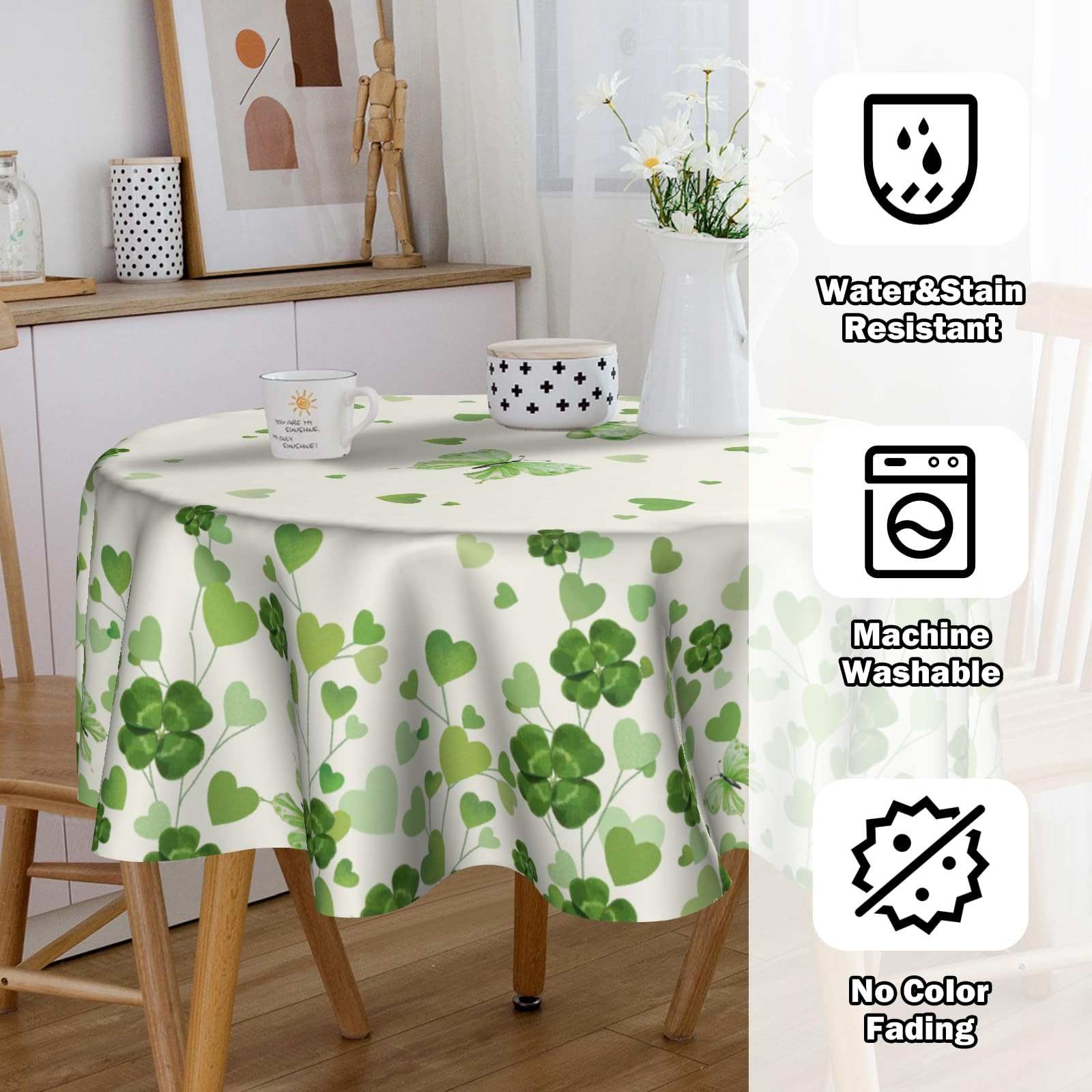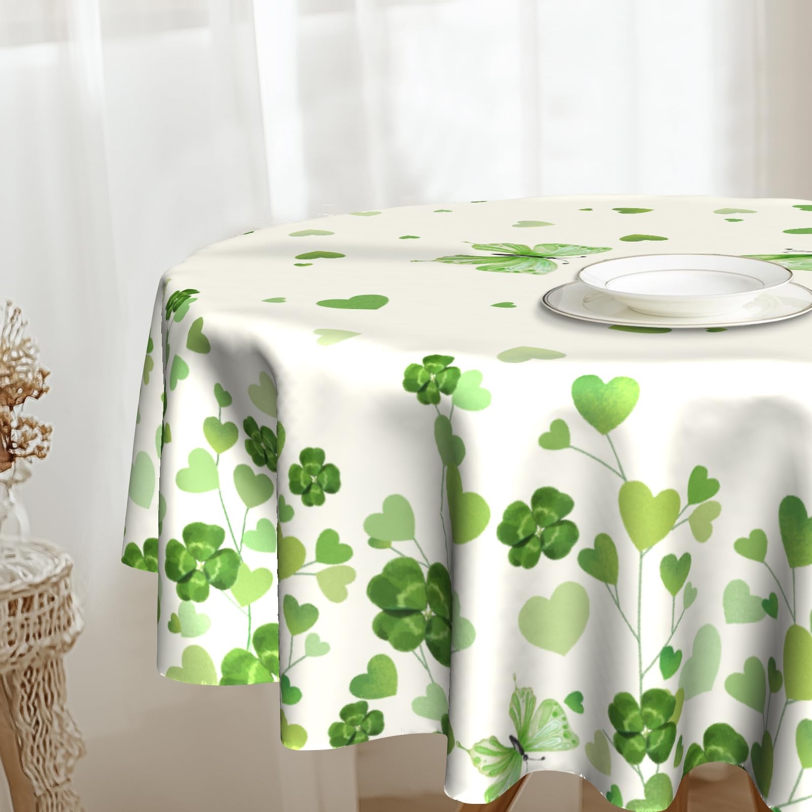St Patricks Day Tablecloth Round 60 inch Shamrock Tablecloths Watercolor Tabl...