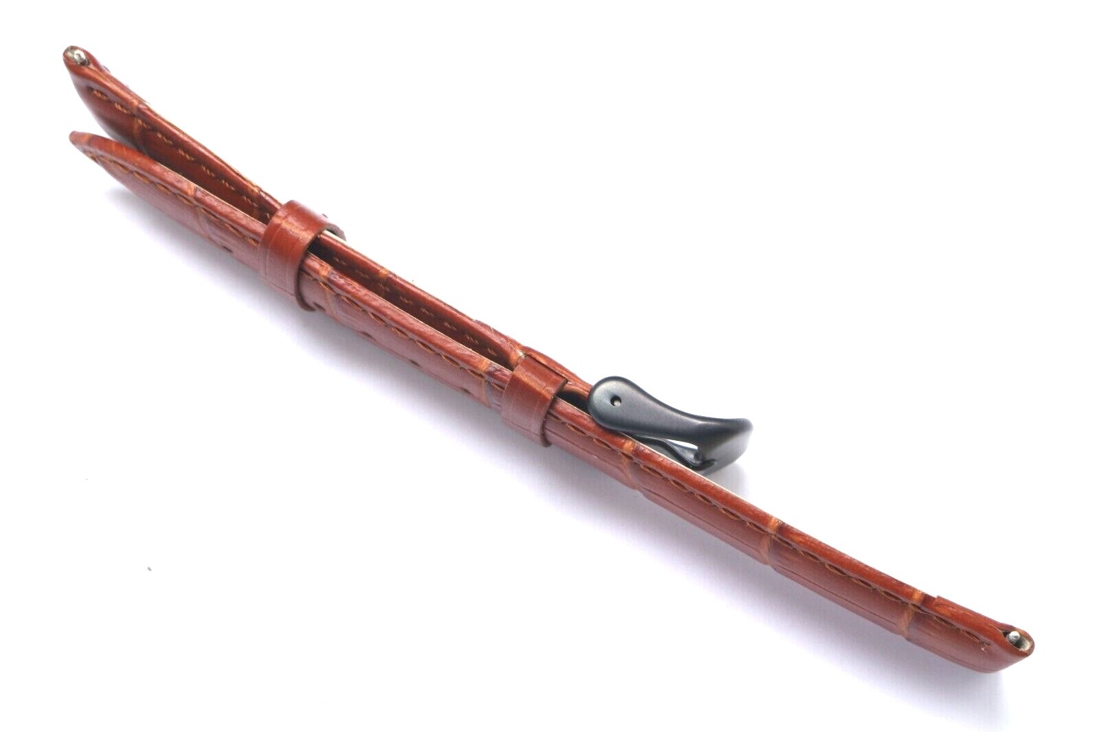как выглядит 20mm Brown Crocodile Grain Leather Unisex Watch Band Strap Black Tone Buckle фото