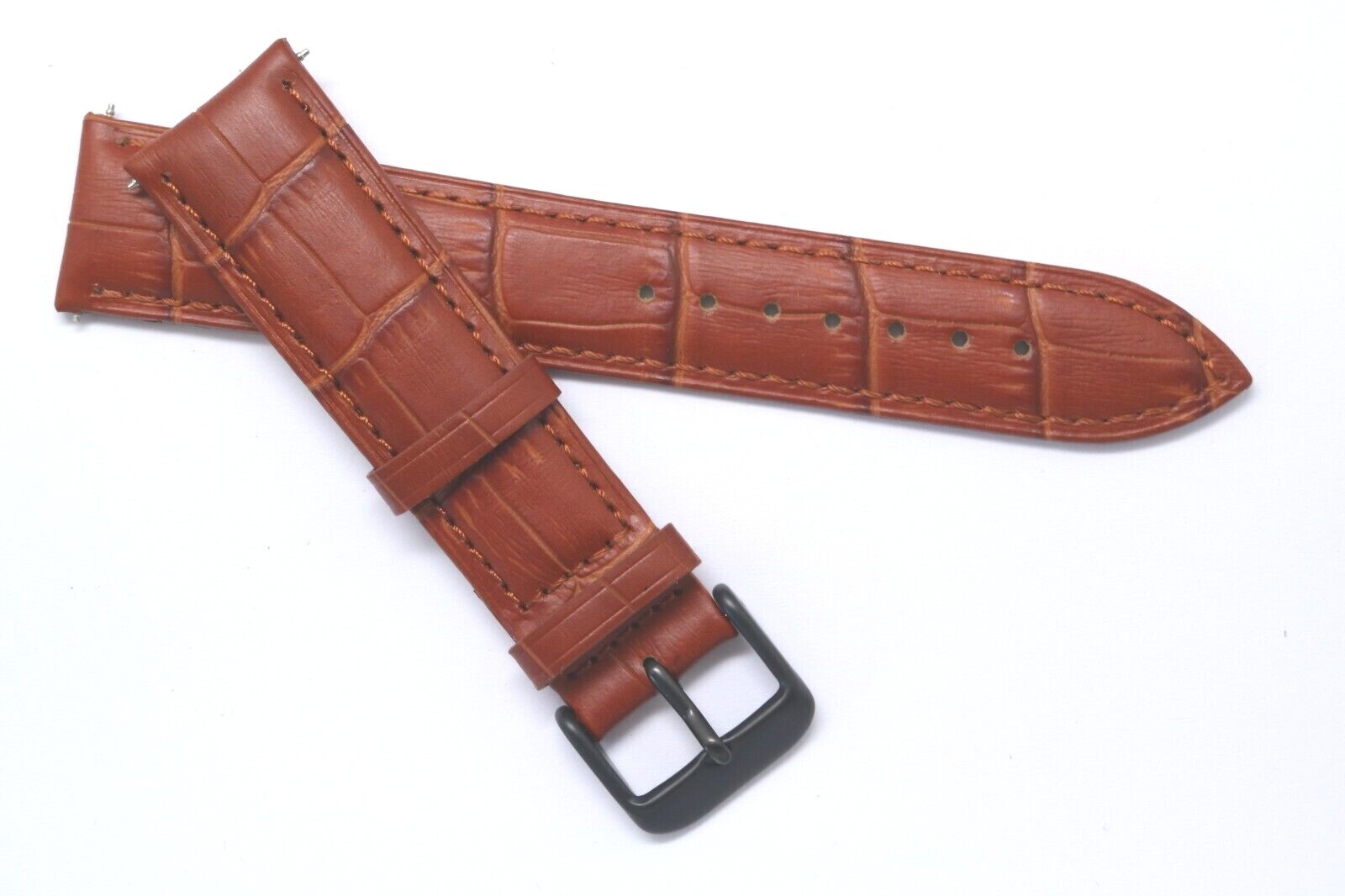 20mm Brown Crocodile Grain Leather Unisex Watch Band Strap Black Tone Buckle