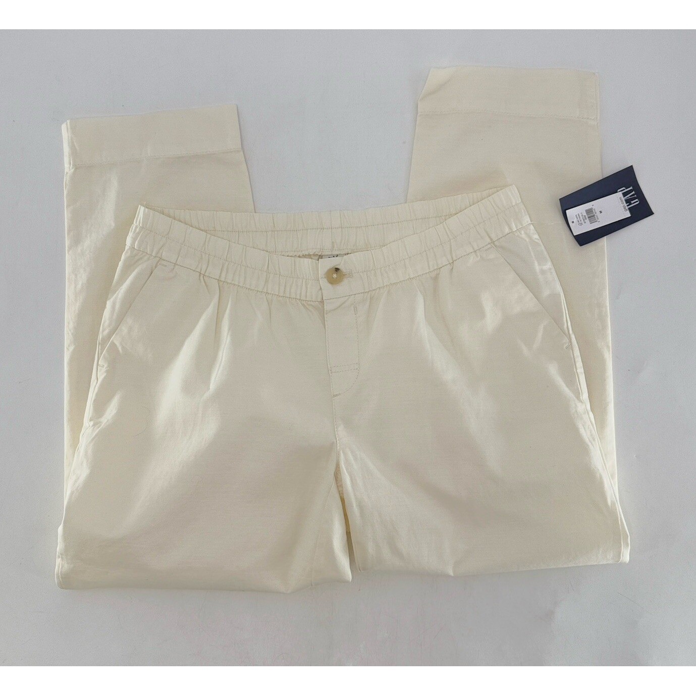 NWT Women's GAP 100 Cotton Ivory Frost Straight Leg Crop Pants Sz Med Normcore