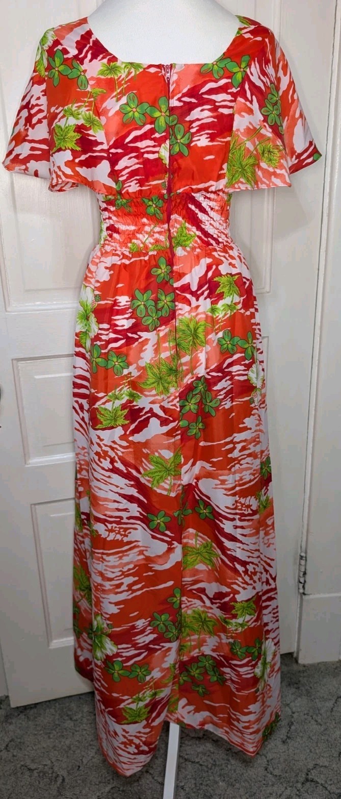 Vintage Ja-Na Of Hawaii Muumuu Maxi Dress Women's 7/8 Resort Flutter 910
