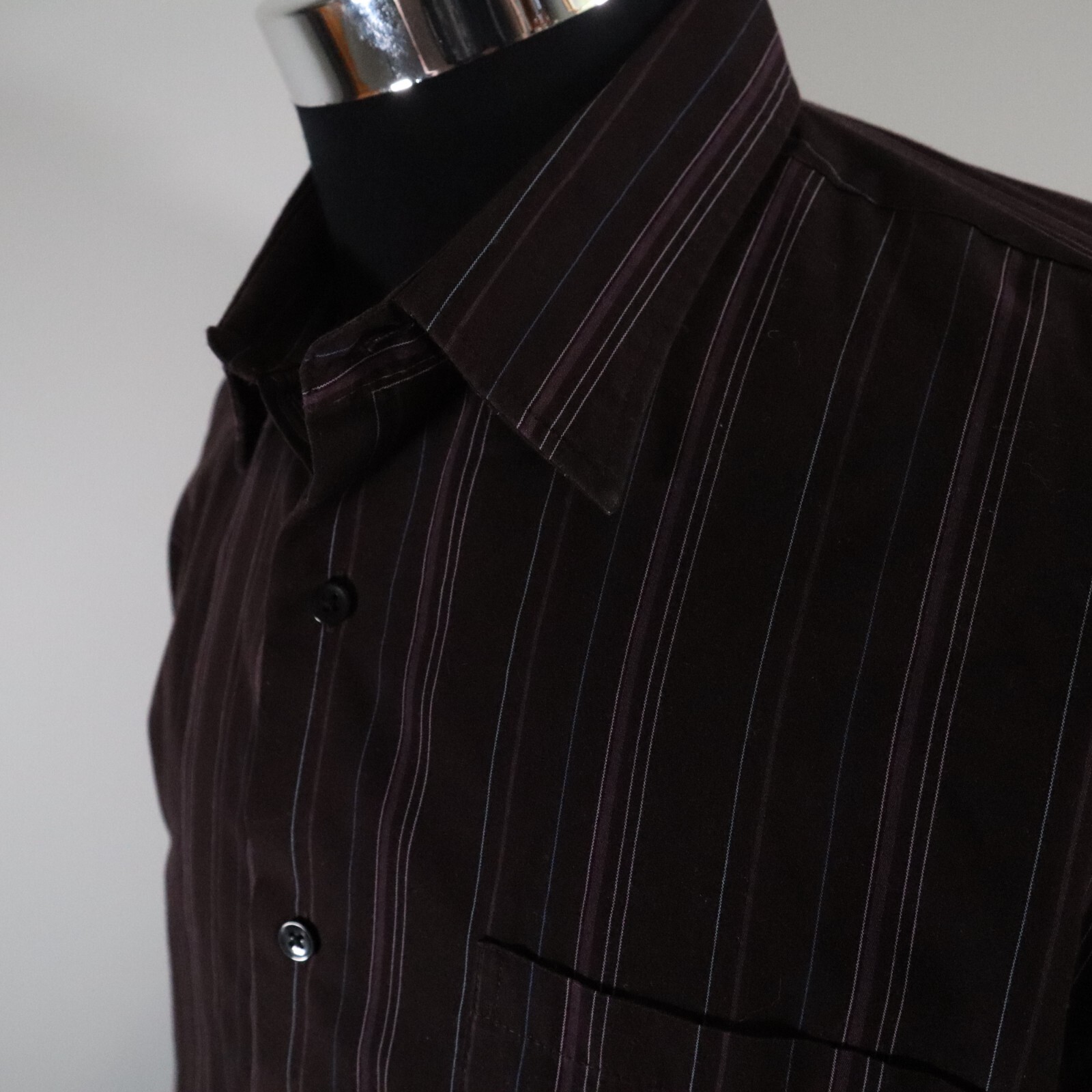 как выглядит Van Heusen Shirt Mens Large 16-16.5 Button Up Dark Purple Striped Long Sleeve фото