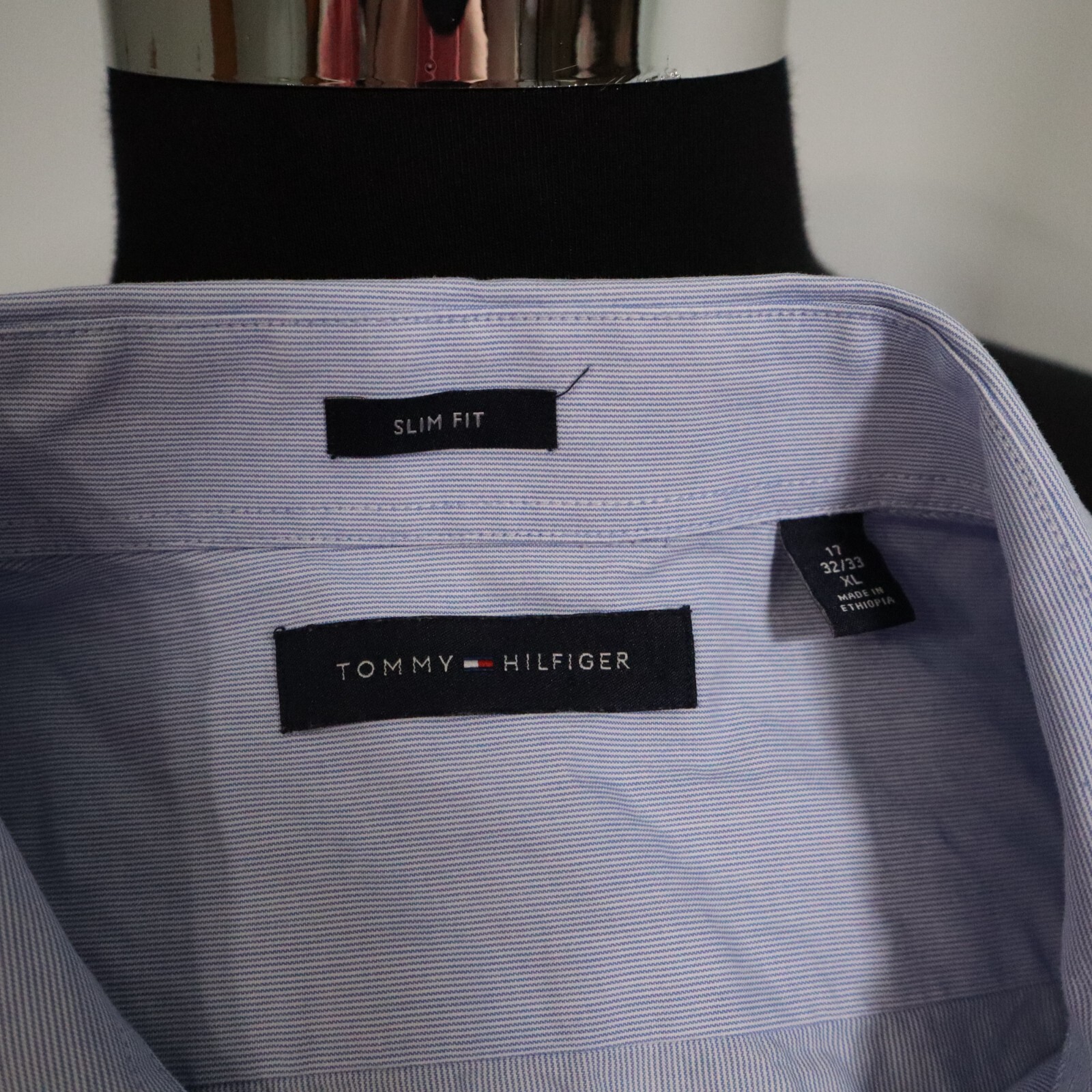 Tommy Hilfiger Shirt Mens XL 17 32/33 Slim Fit Dress Button Up Blue Long Sleeve