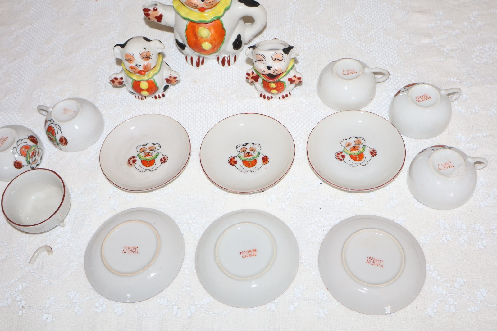 Vintage 15 pc Doll Tea Set Dogs Tea Pot Creamer Sugar Cups Saucers Japan