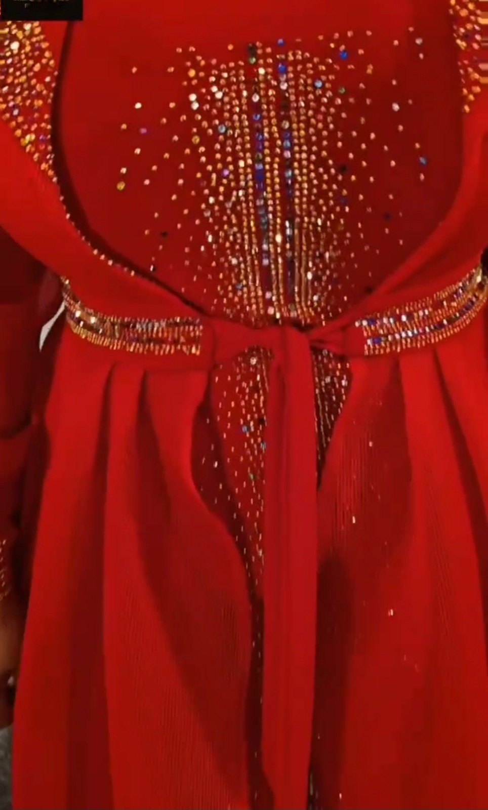 как выглядит Red Kaftan Dress with multicolor stone Embellishments фото