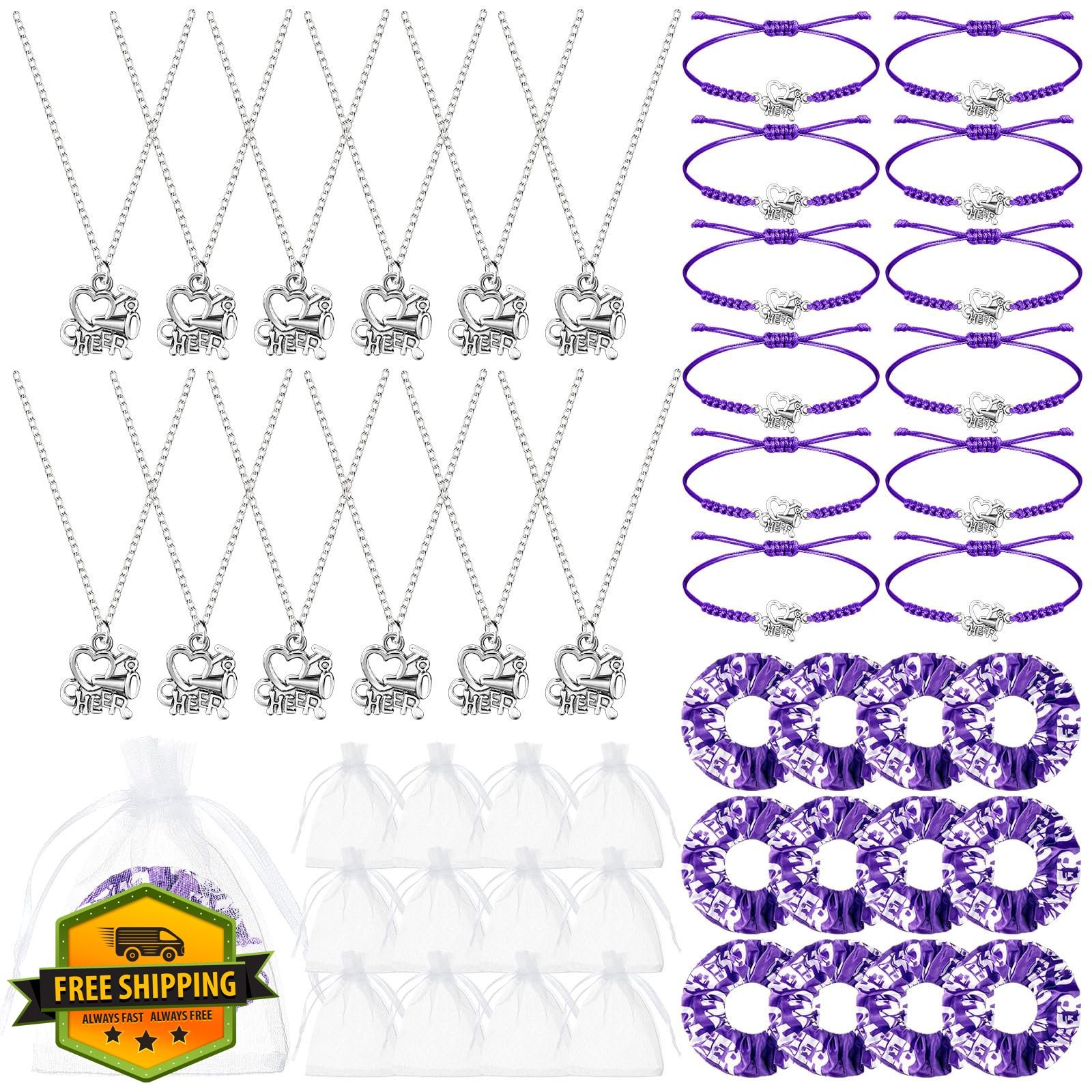 Equsion Cheerleader Gifts 12 Set Necklace Bracelet Hair Ties Bag