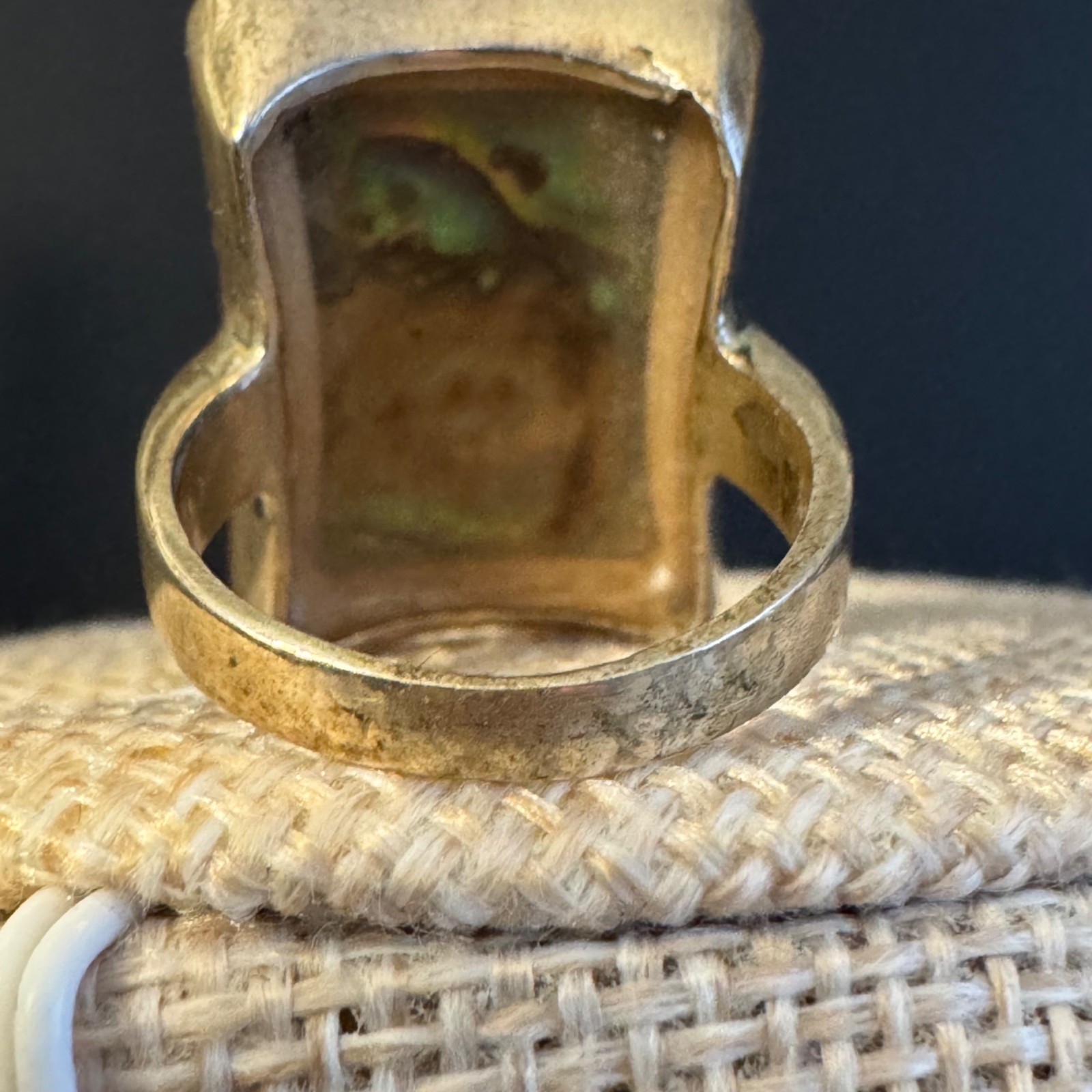 Abalone Shell Sterling Silver 925 Ring Rectangular Design SZ 7.25 Band Vintage
