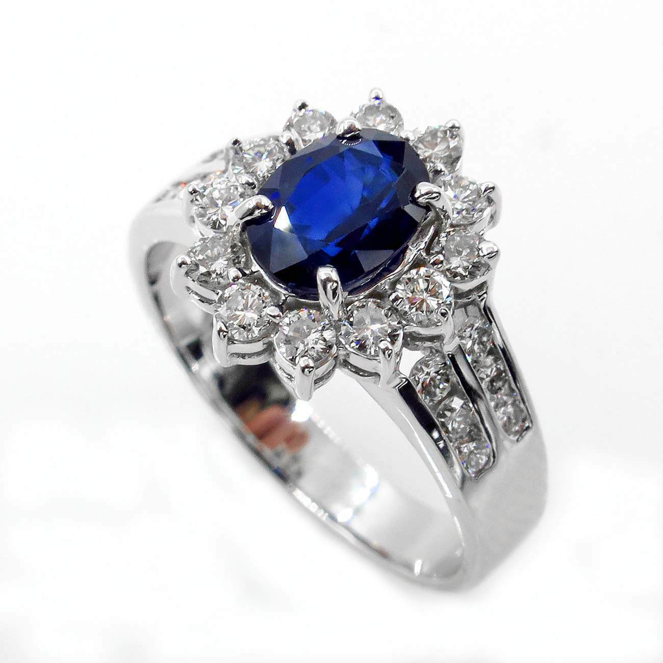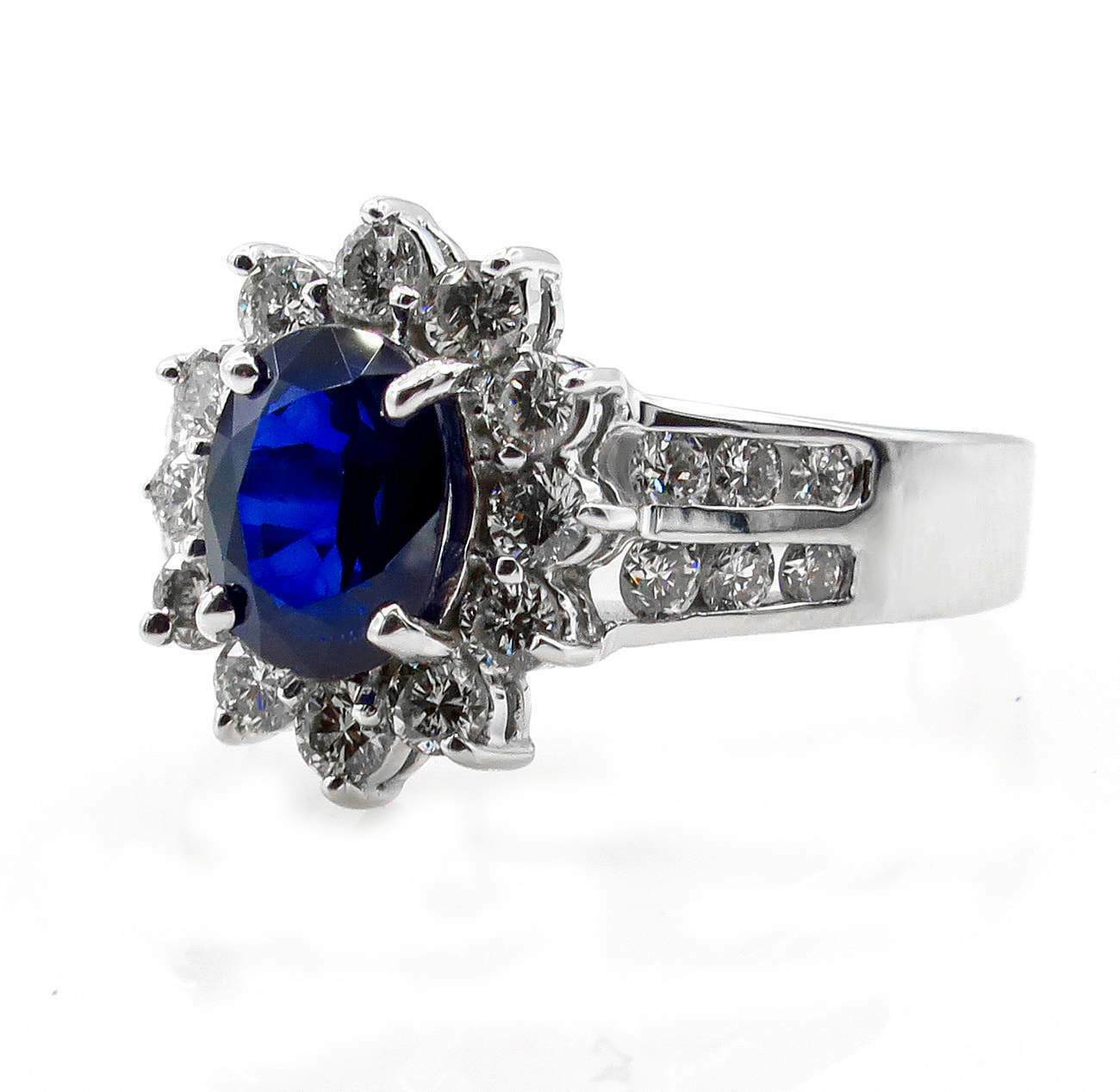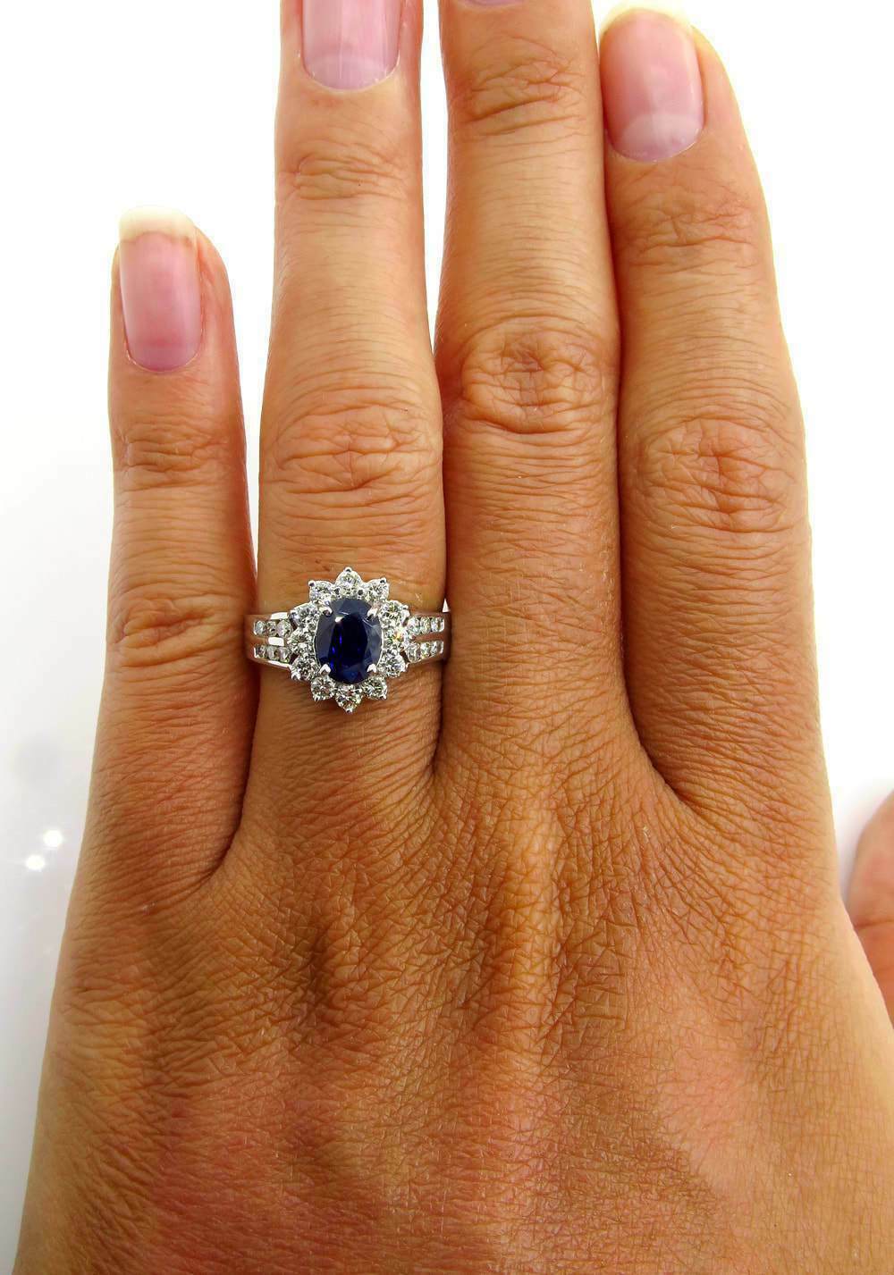 как выглядит 5 Ct Lab-Created Oval Blue Sapphire Round CZ Halo Flower Cluster Ring 925 Silver фото
