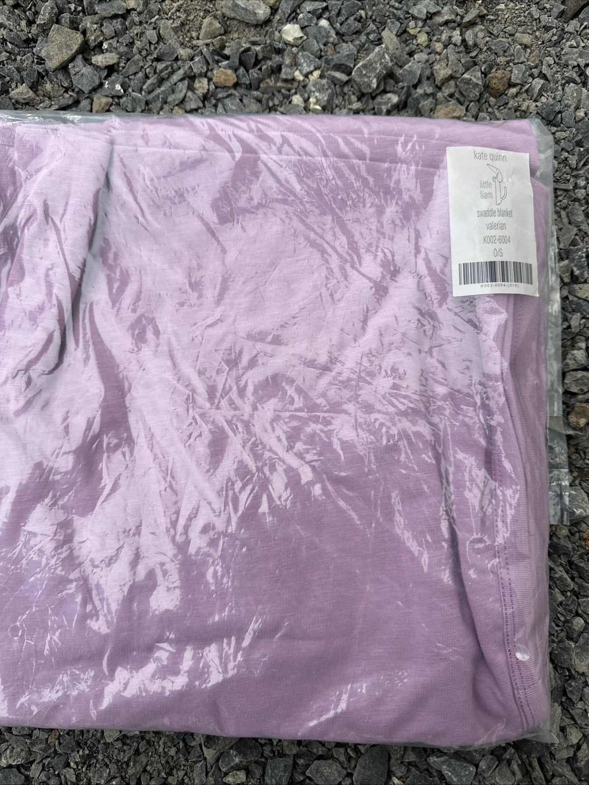 NWT Kate Quinn Swaddle Blanket in Purple Valerian Plum Little Liam Org Cotton