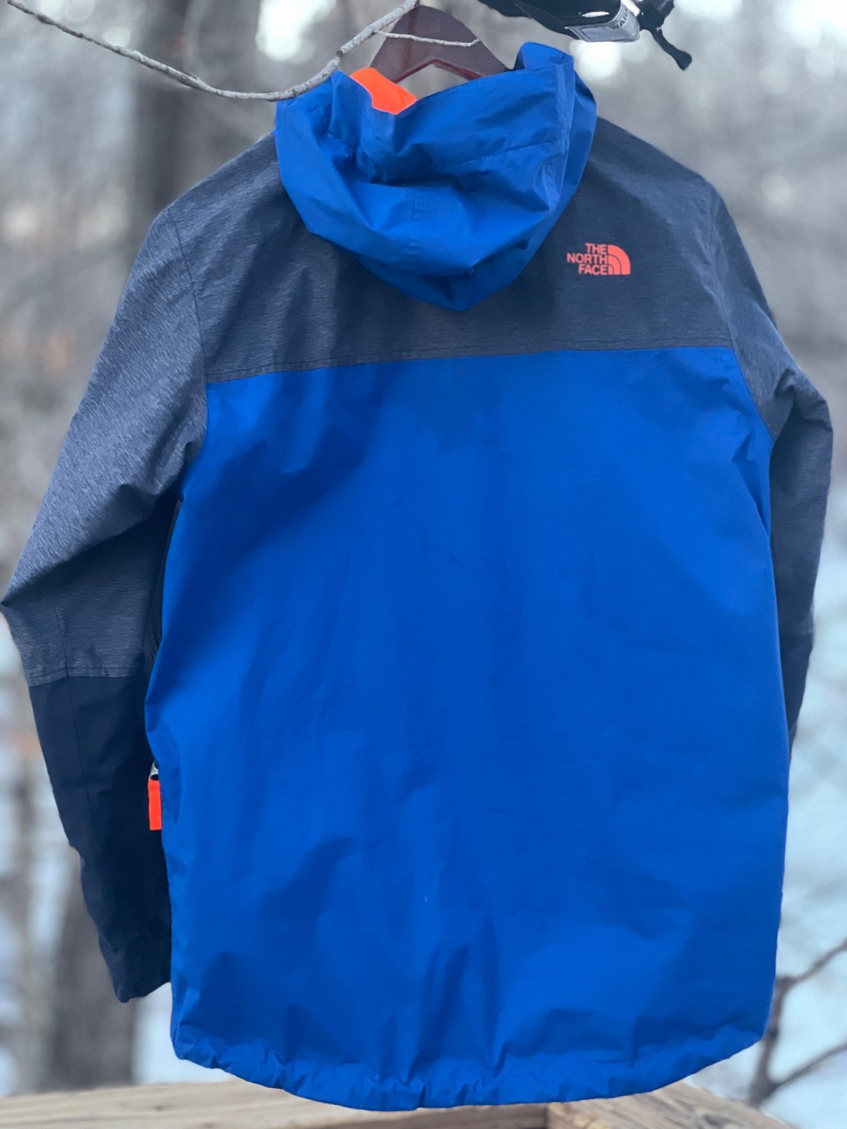 как выглядит The North Face Jacket Boys L 14/16 DryVent Blue-Grey-Orange Waterproof Hood фото