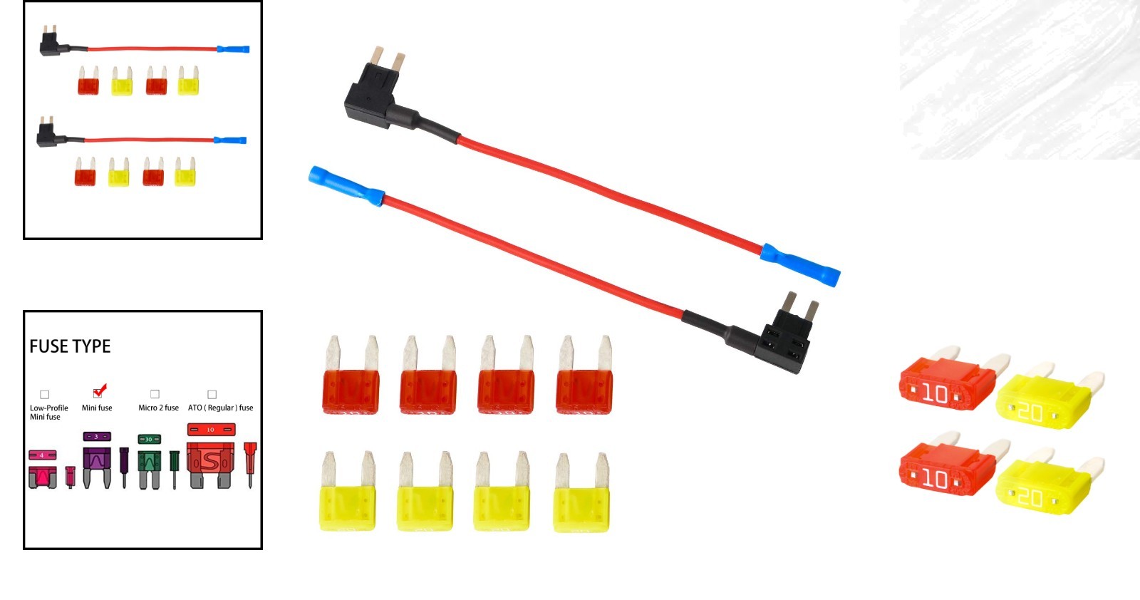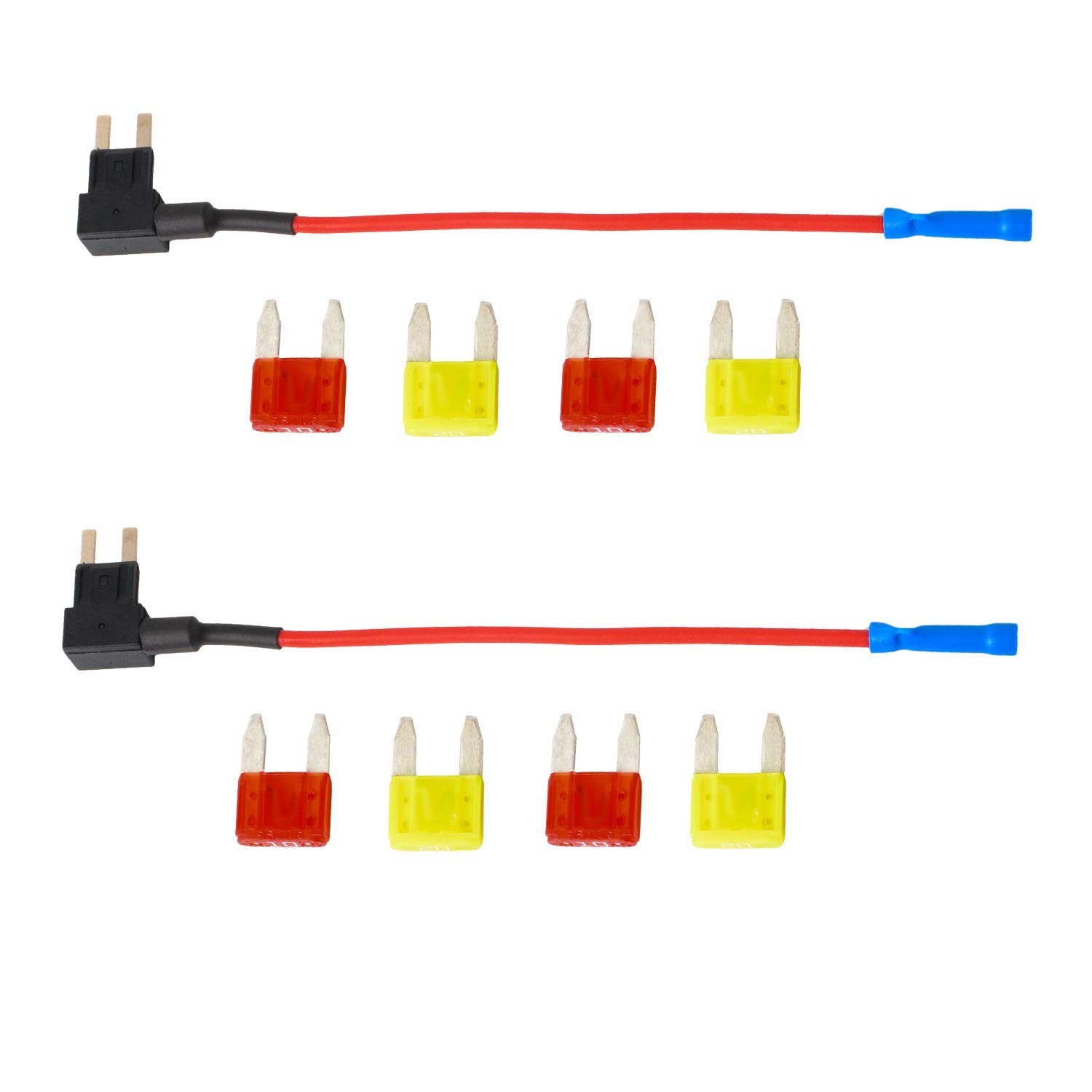 Mini Blade Fuse Holder with 10A 20A Fuses - 12V Car Add-a-Circuit TAP Adapter