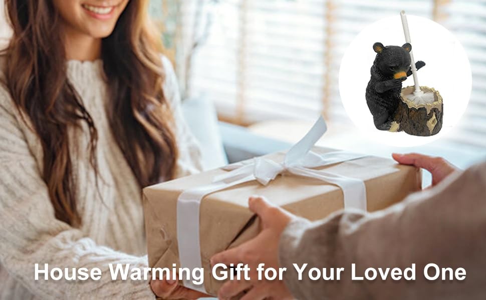 Whimsical Black Bear Toilet Brush Holder Set - Unique Cub Shape Decorative