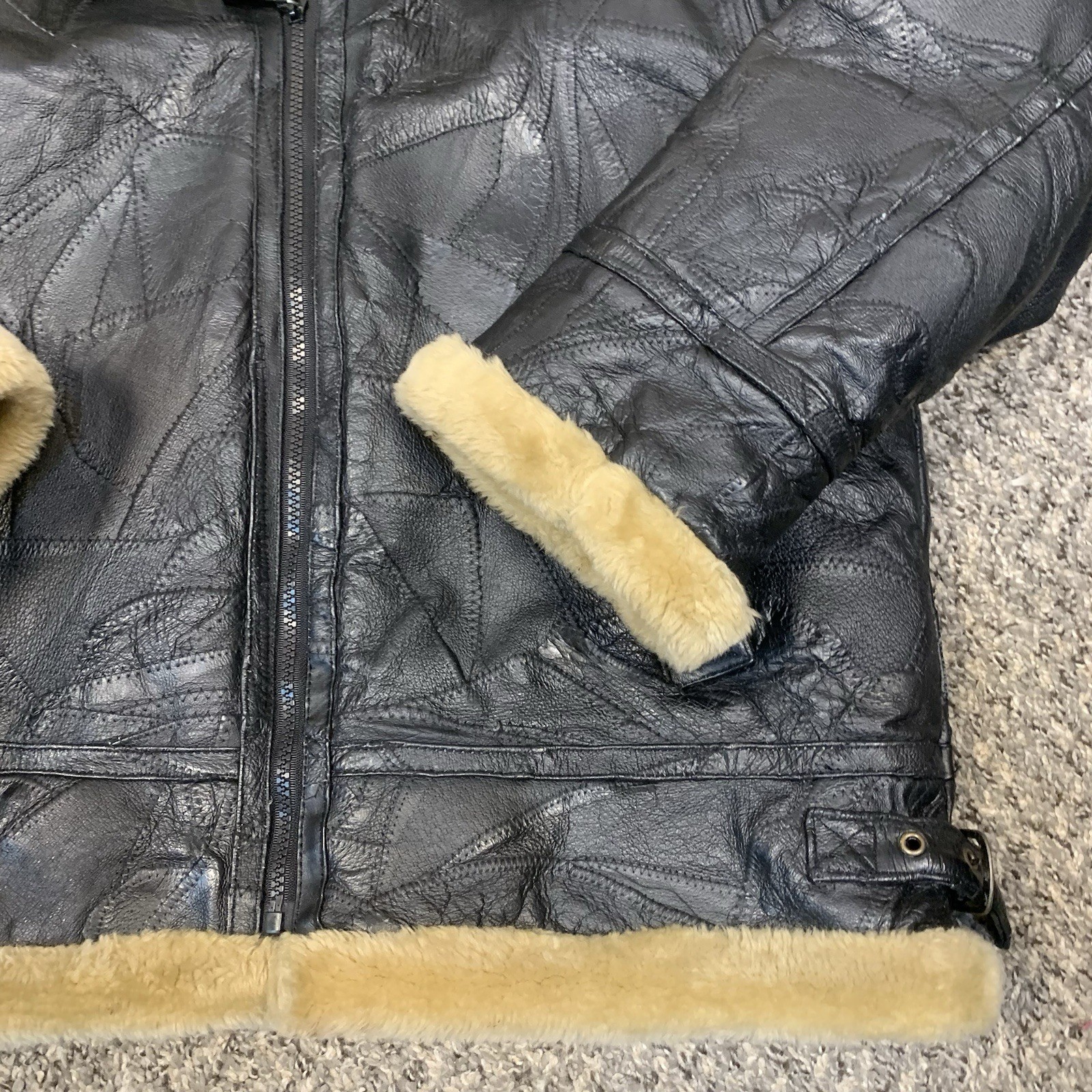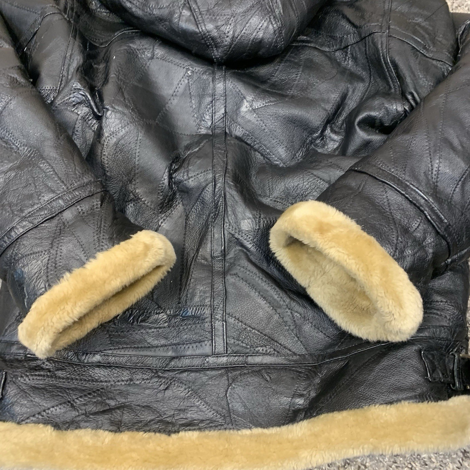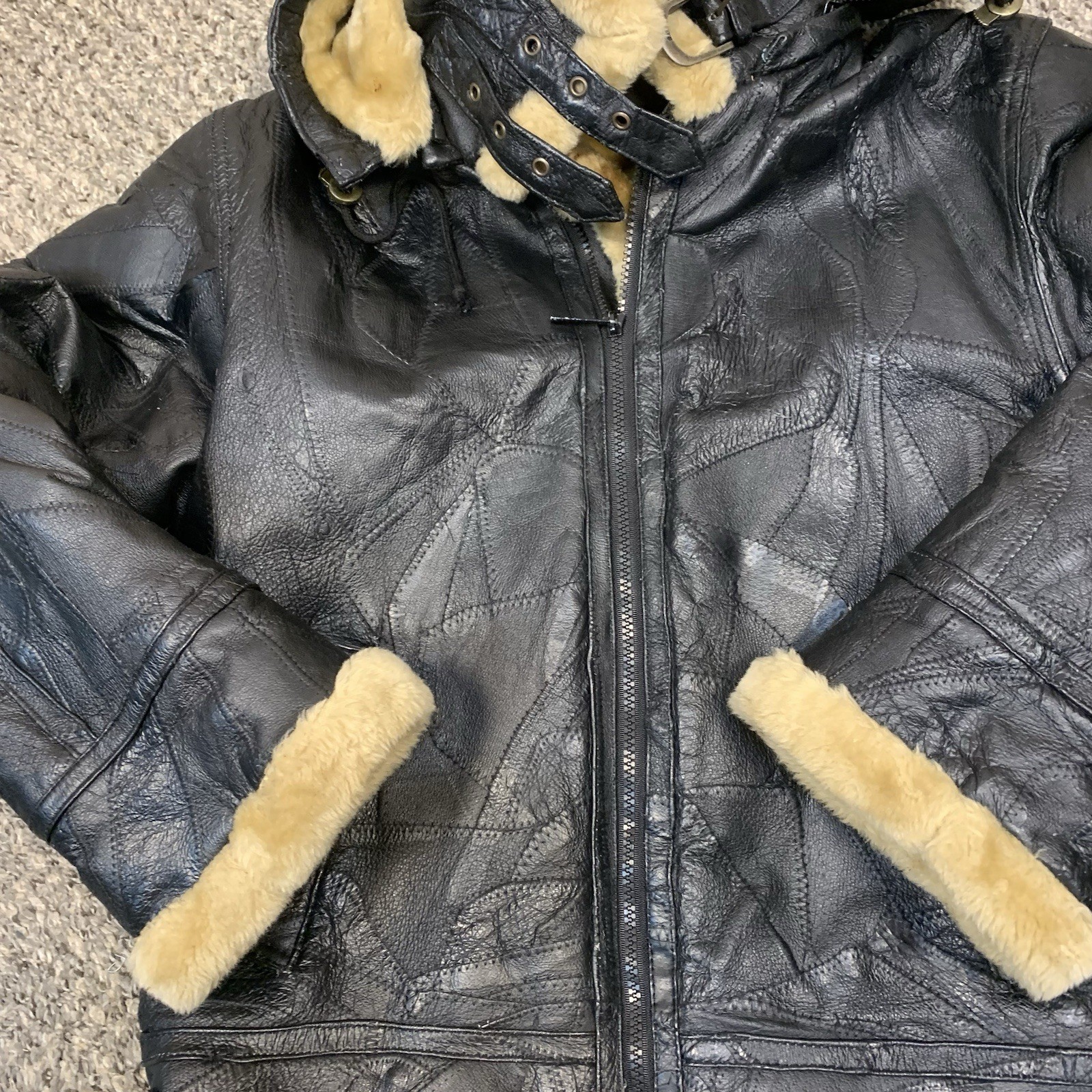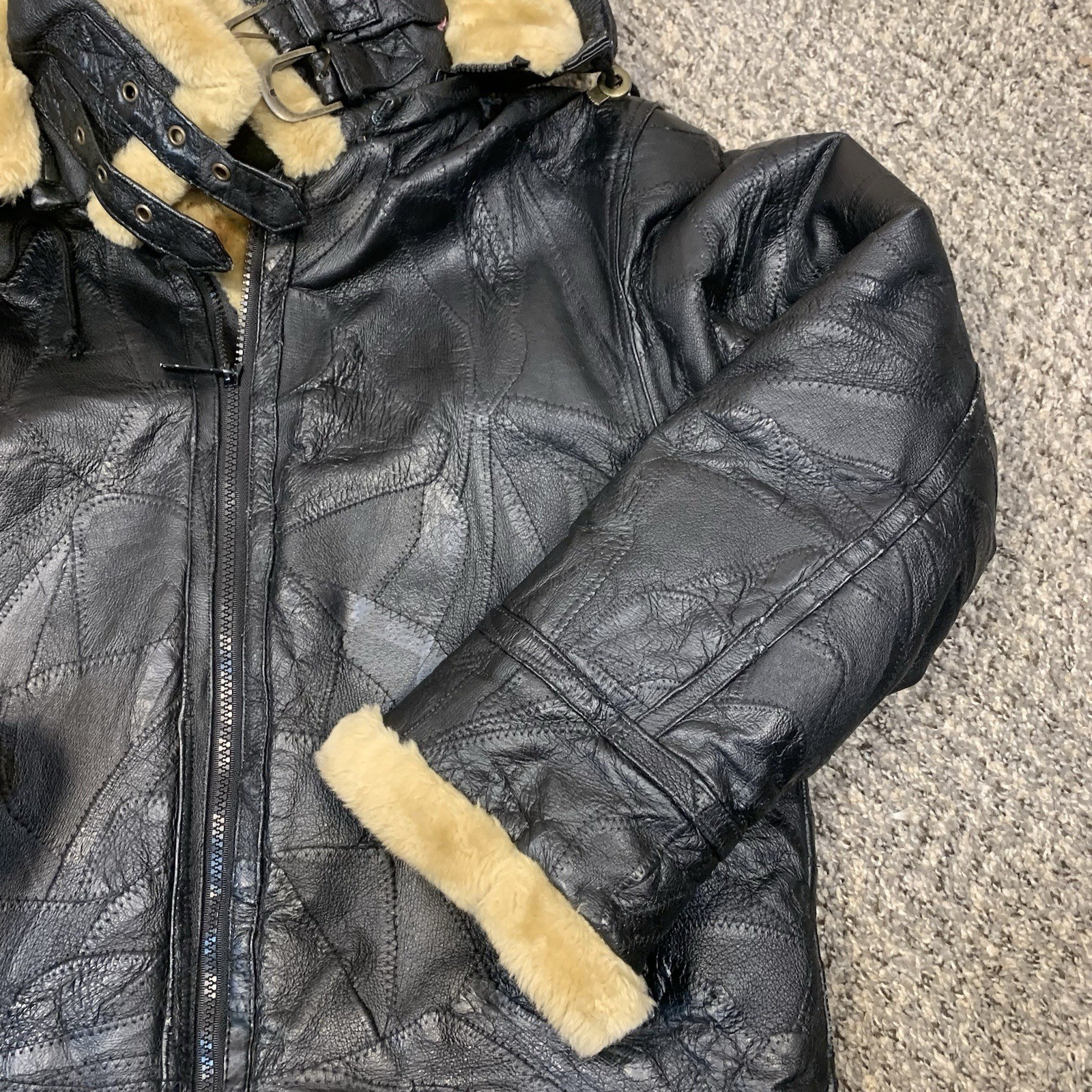 как выглядит VTG Wilda Mens Leather Faux Fur Hooded Aviator Jacket Top Gun Black M/L фото