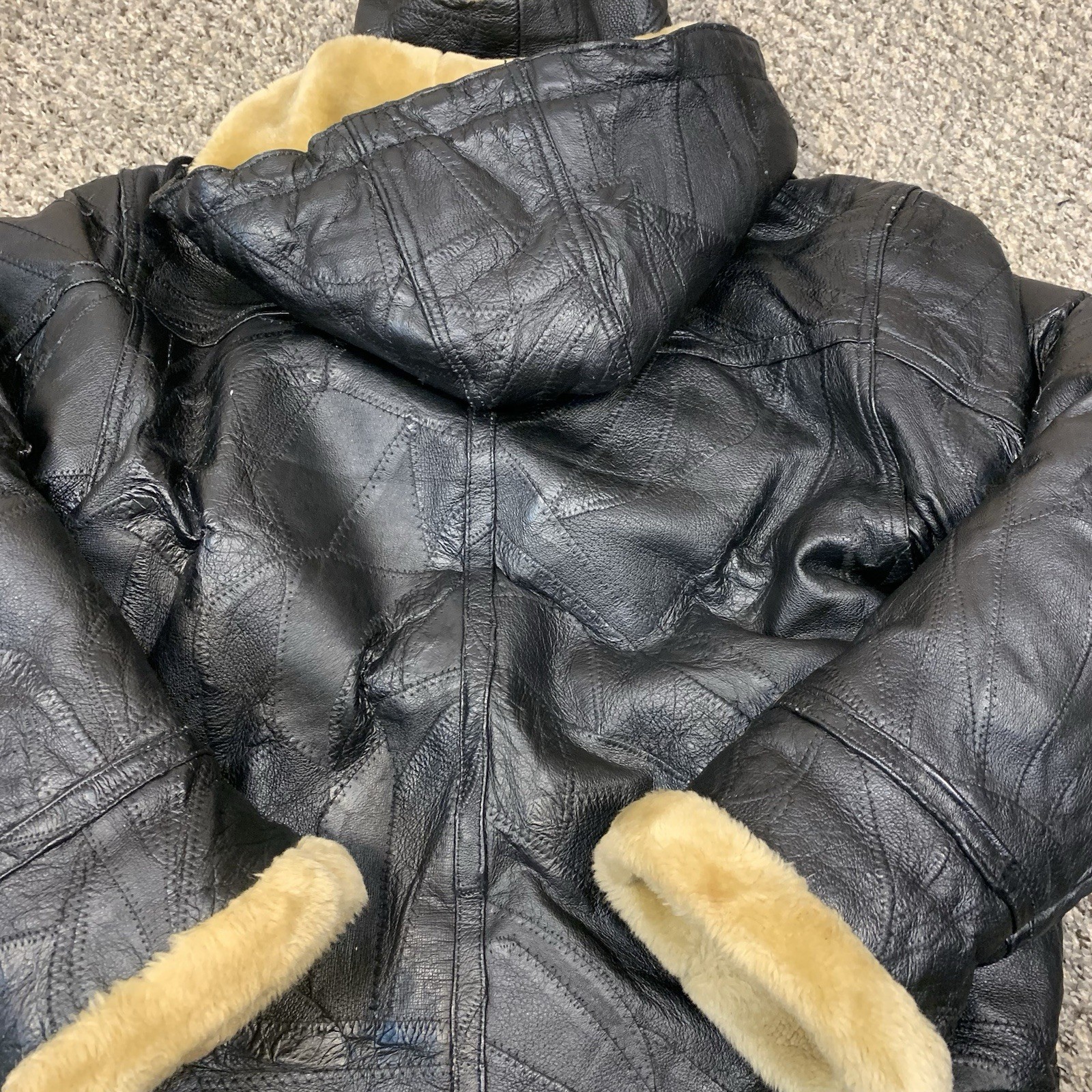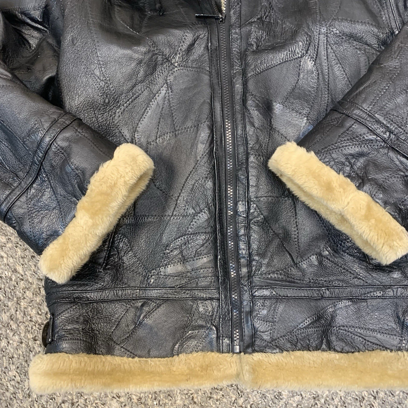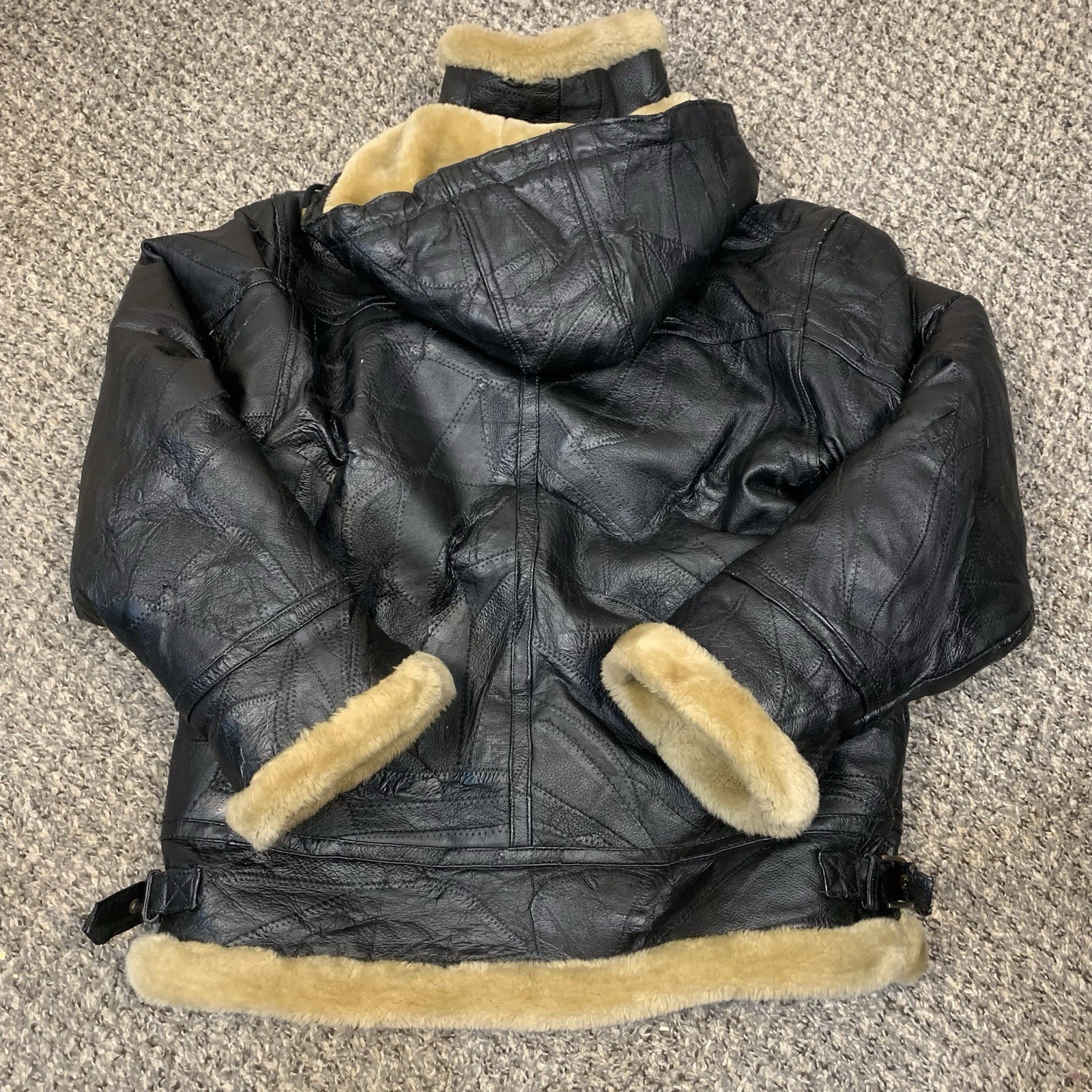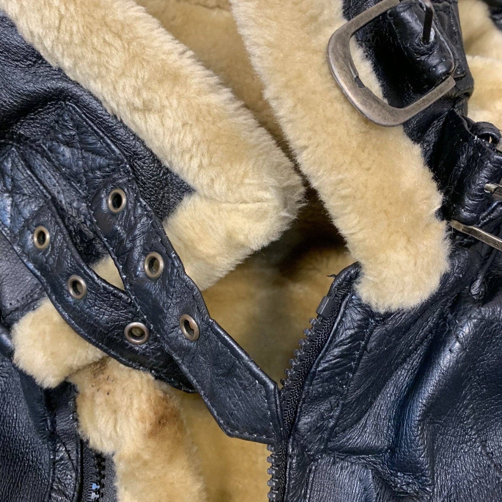 как выглядит VTG Wilda Mens Leather Faux Fur Hooded Aviator Jacket Top Gun Black M/L фото