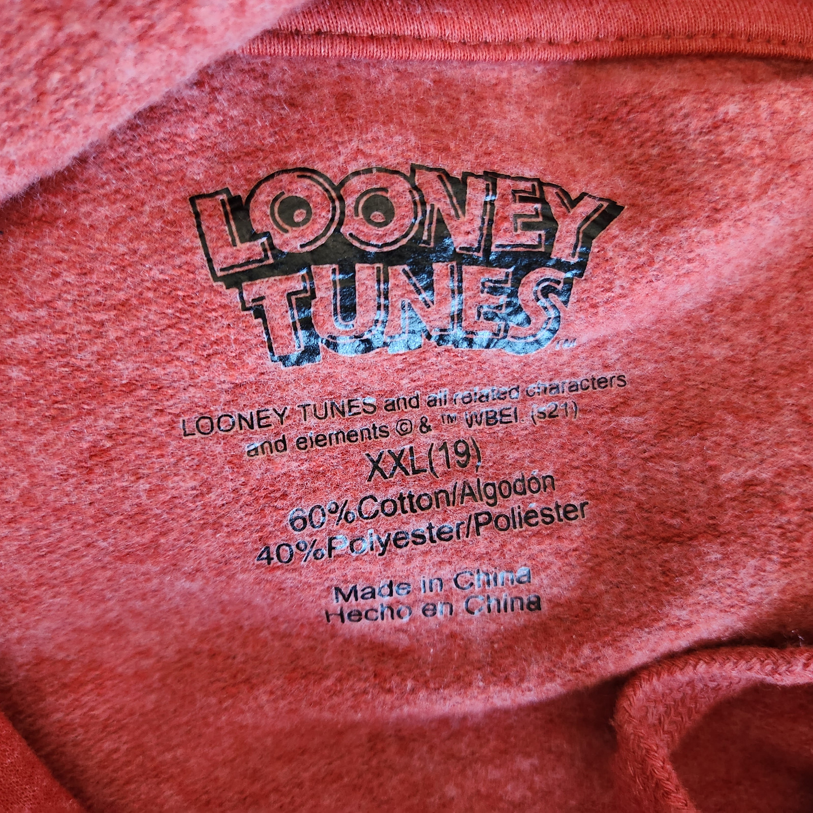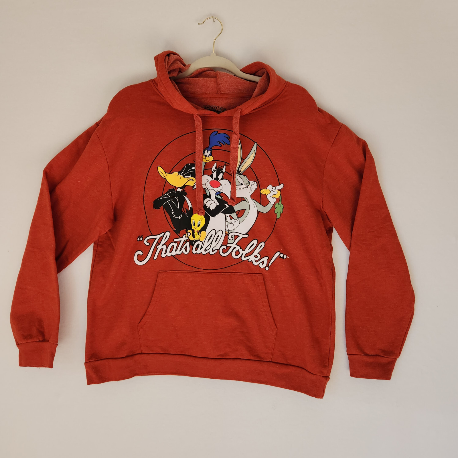 Looney Tunes That's All Folks Youth XXL 19 Hoodie Sweatshirt Pocket Orange-Red