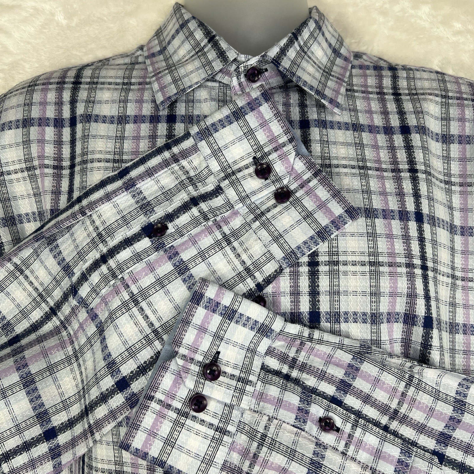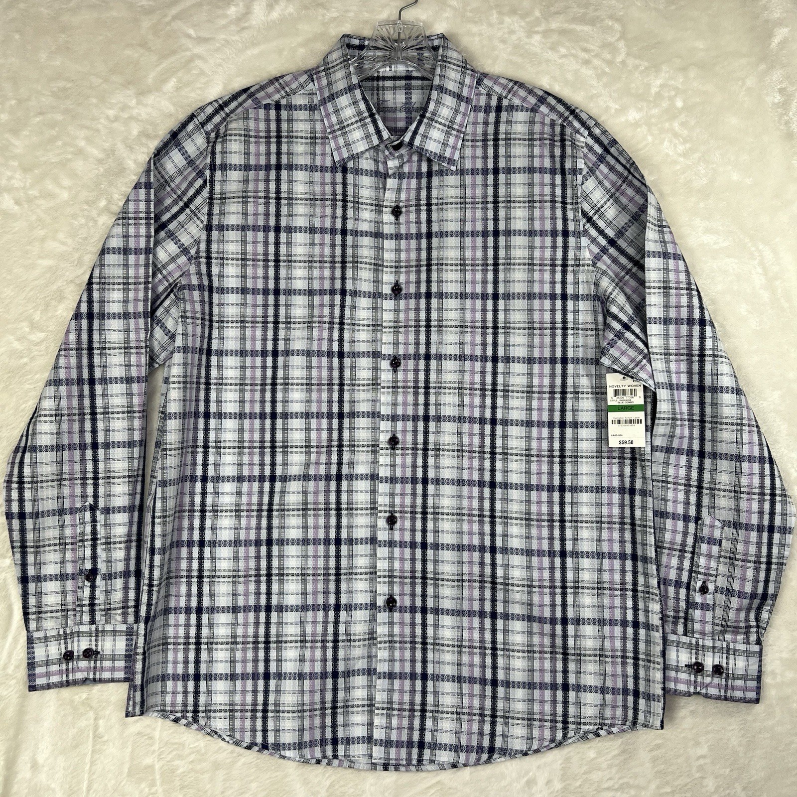 New Tasso Elba Man Sz L Dress Shirt Long Sleeve Plaid Cotton Career Travel Prepp