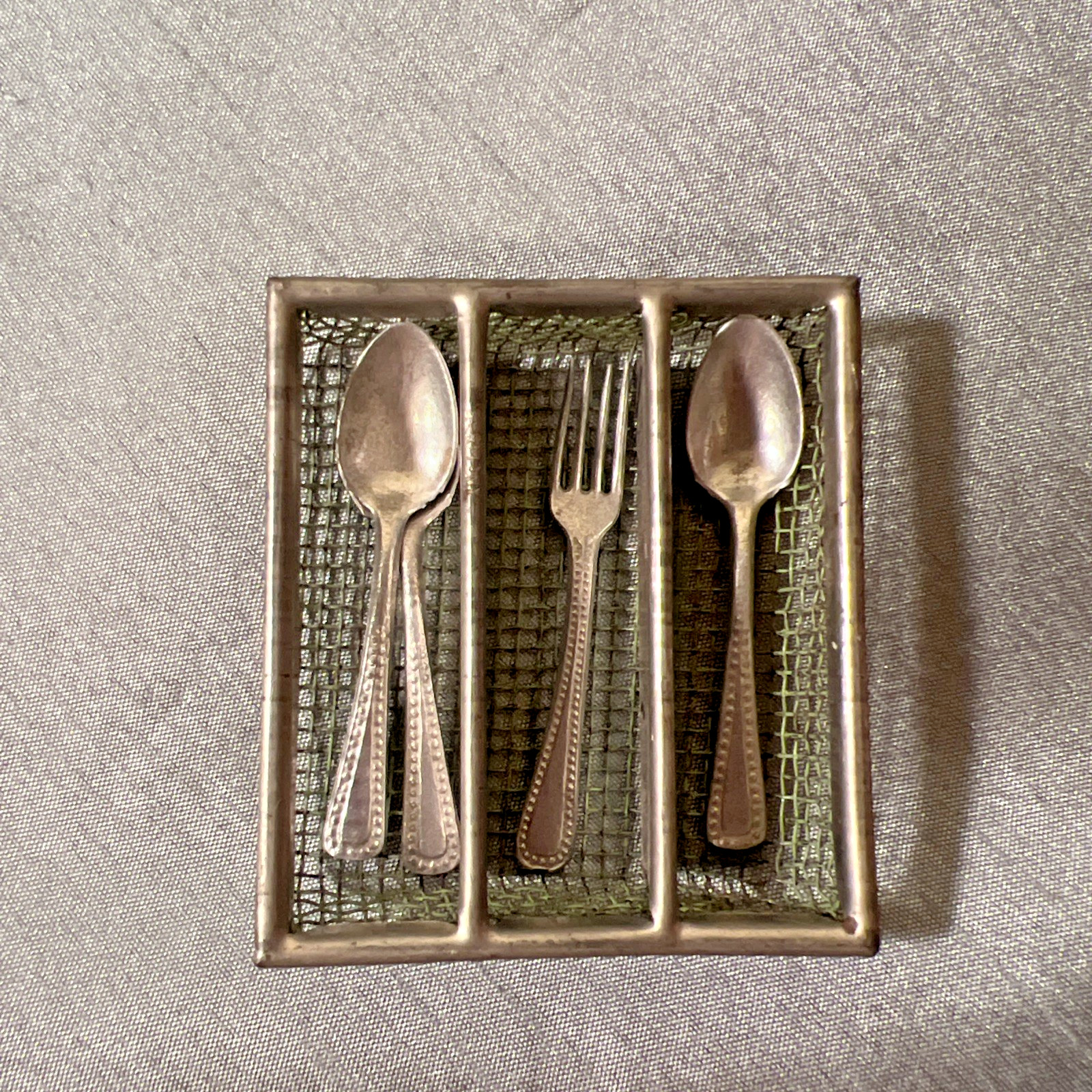 Vintage Miniature 2.5 Doll Silverware Caddy Playset Plus Fork Spoons GERMANY