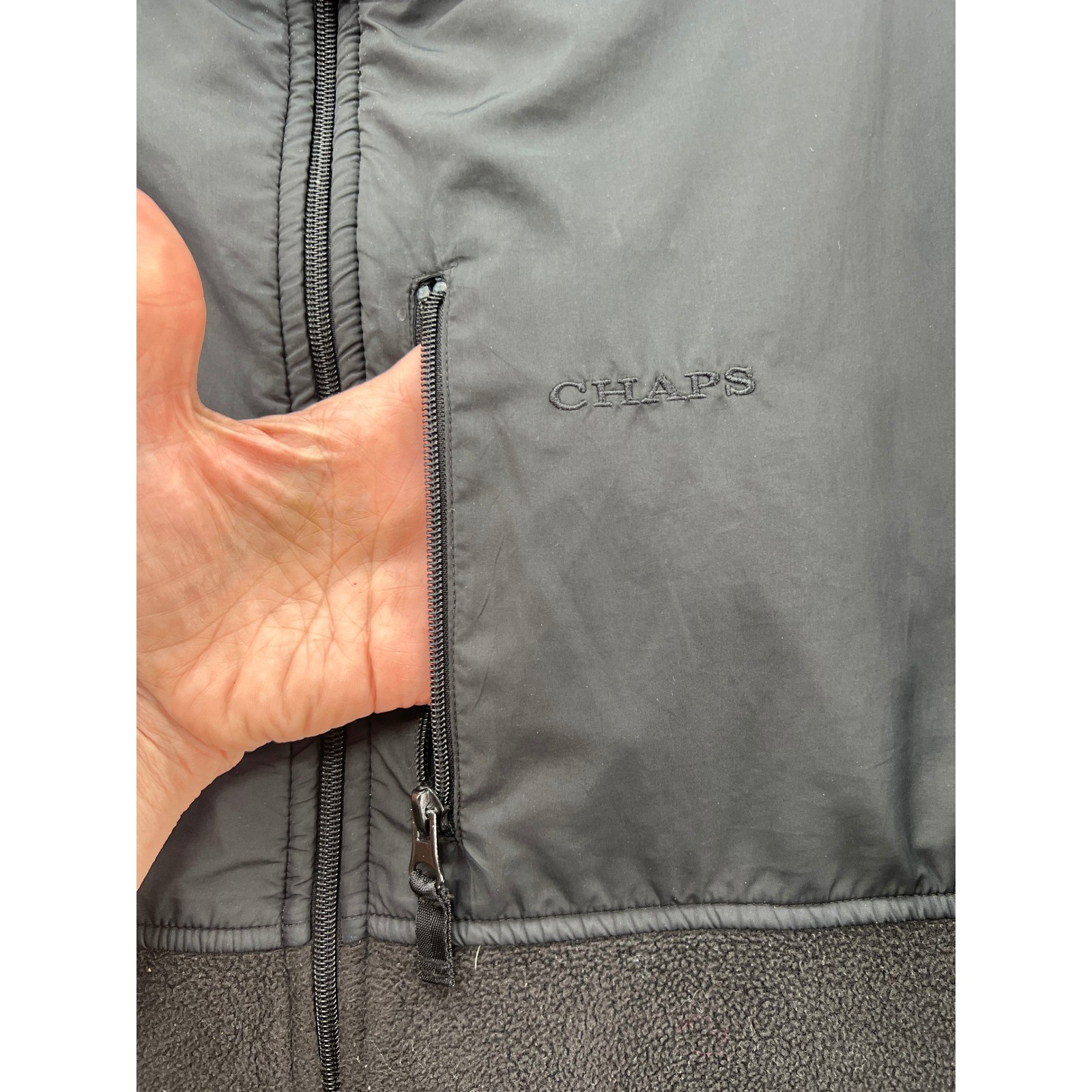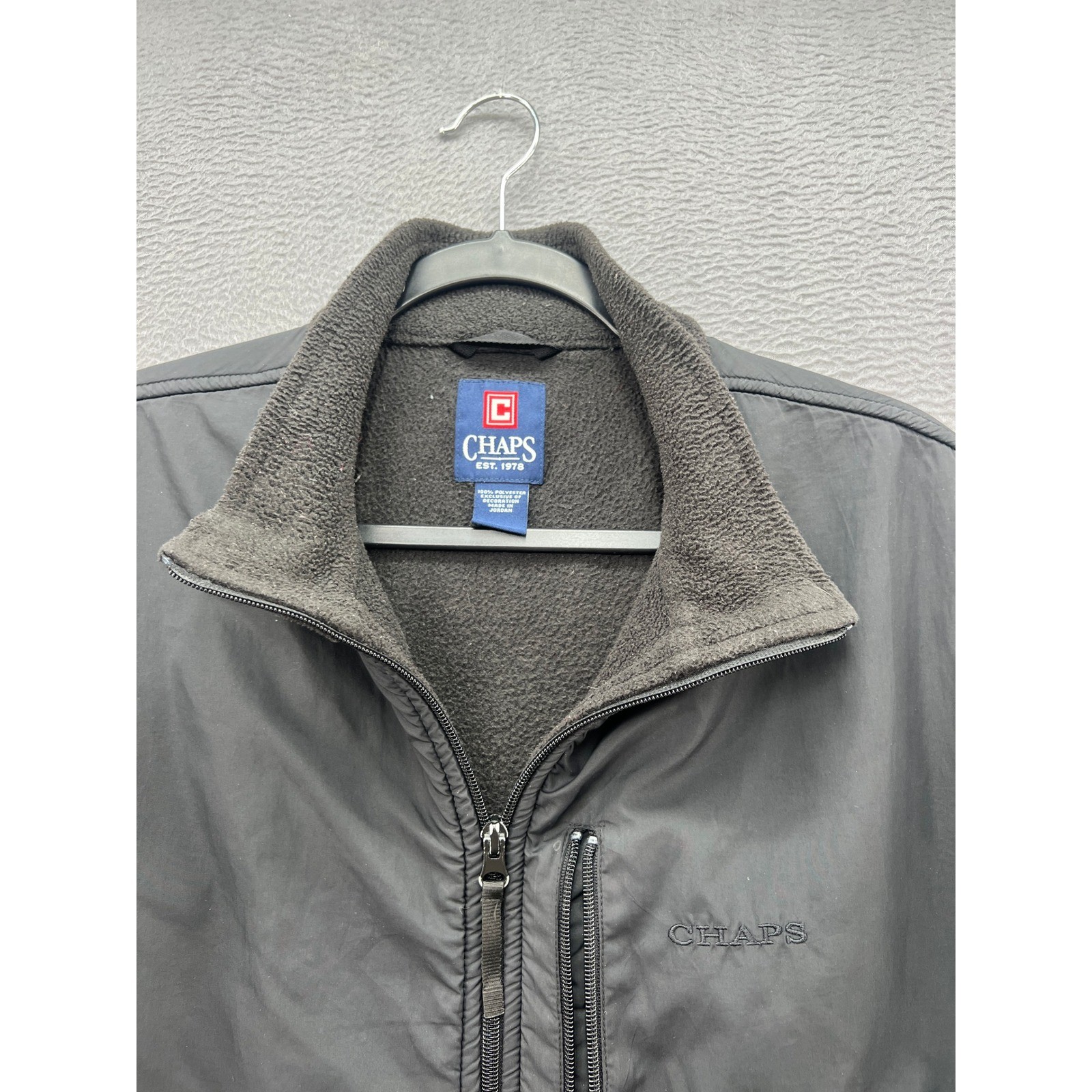 Chaps Jacket Mens Full Zip Fleece Jacket Black Mixed Media Nylon Overlay Large