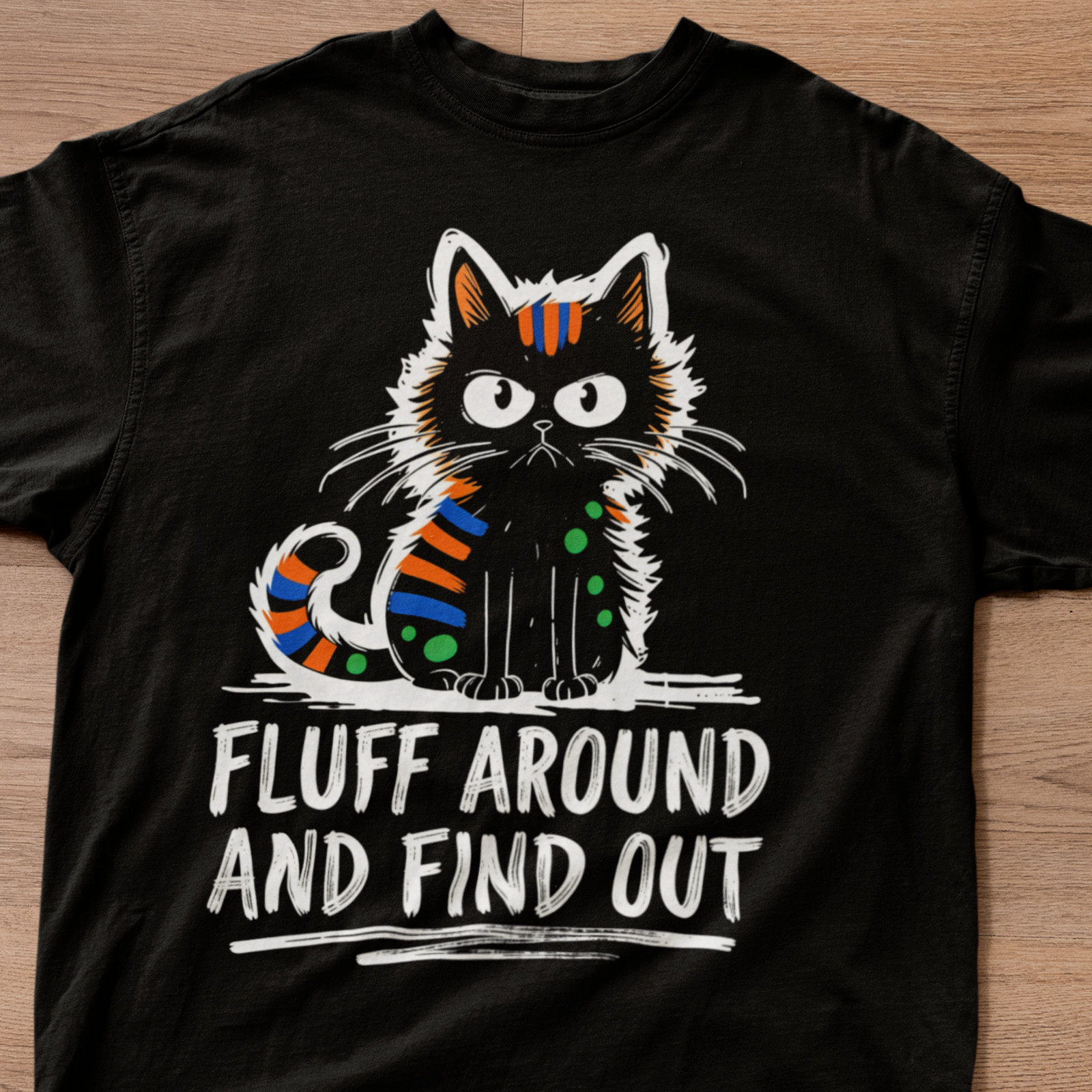 Sarcastic Cat Meme Shirt Fluff Around Find Out Funny Pet Lover Graphic Tee