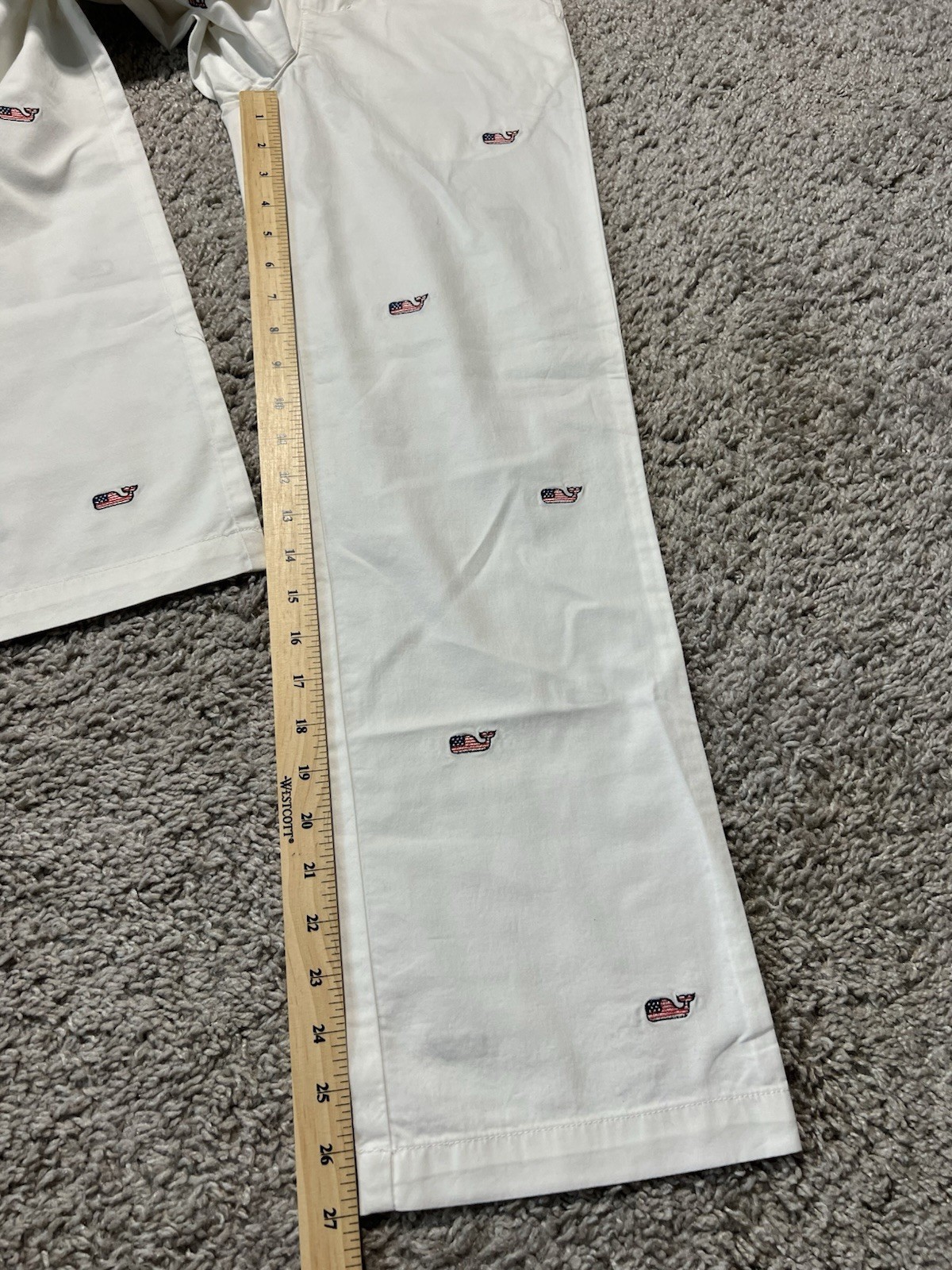 как выглядит NWT 69.50 VINEYARD VINES Boys Embroidered Flag Whale Chino Club Pants White 16 фото