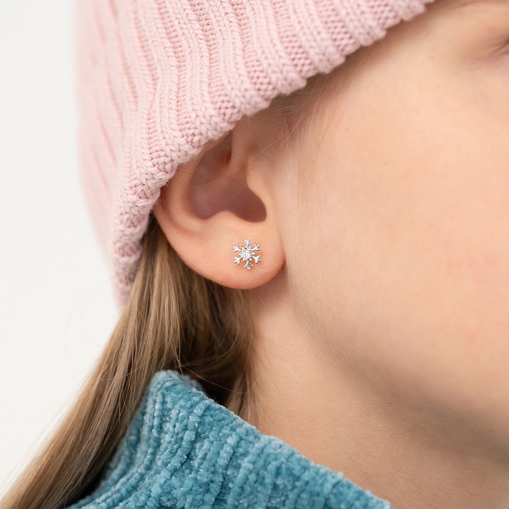 как выглядит Icy Snowflake Kids / Childrens / Girls Earrings Screw Back - Sterling Silver фото