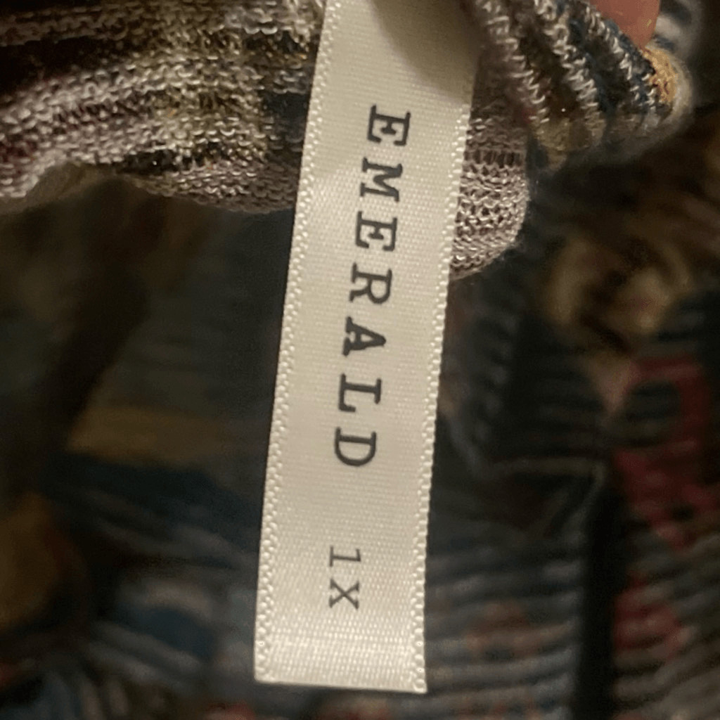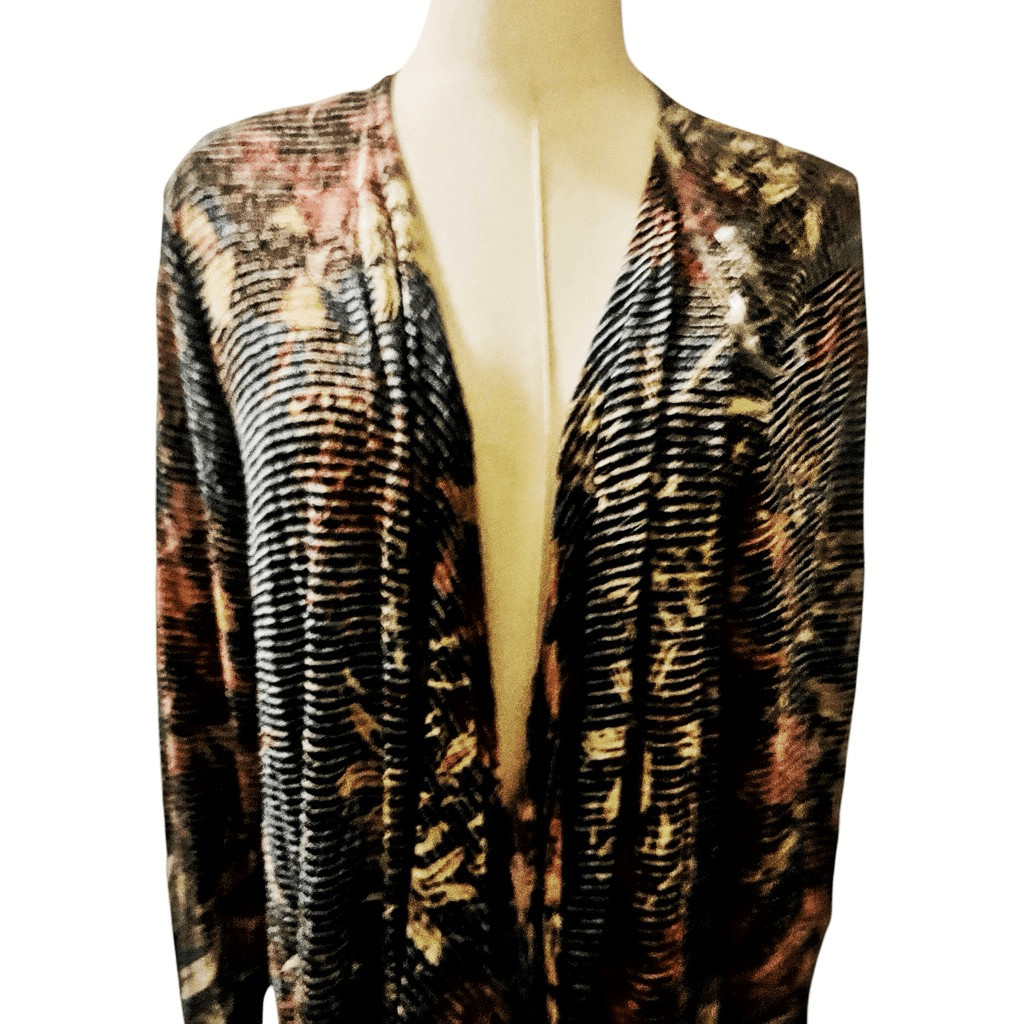 Emerald Black Floral Open Front Duster Kimono Size 1X NWOT
