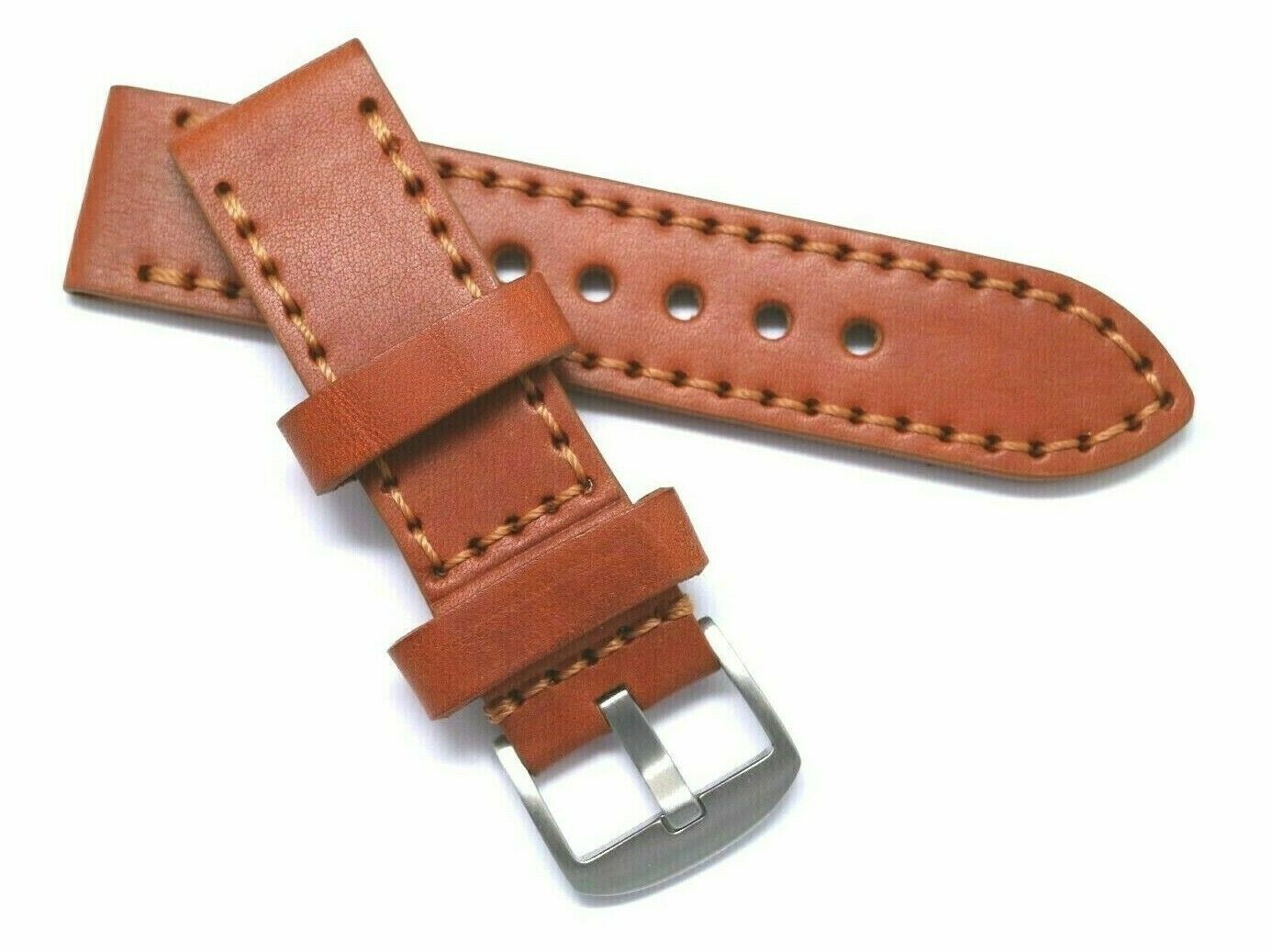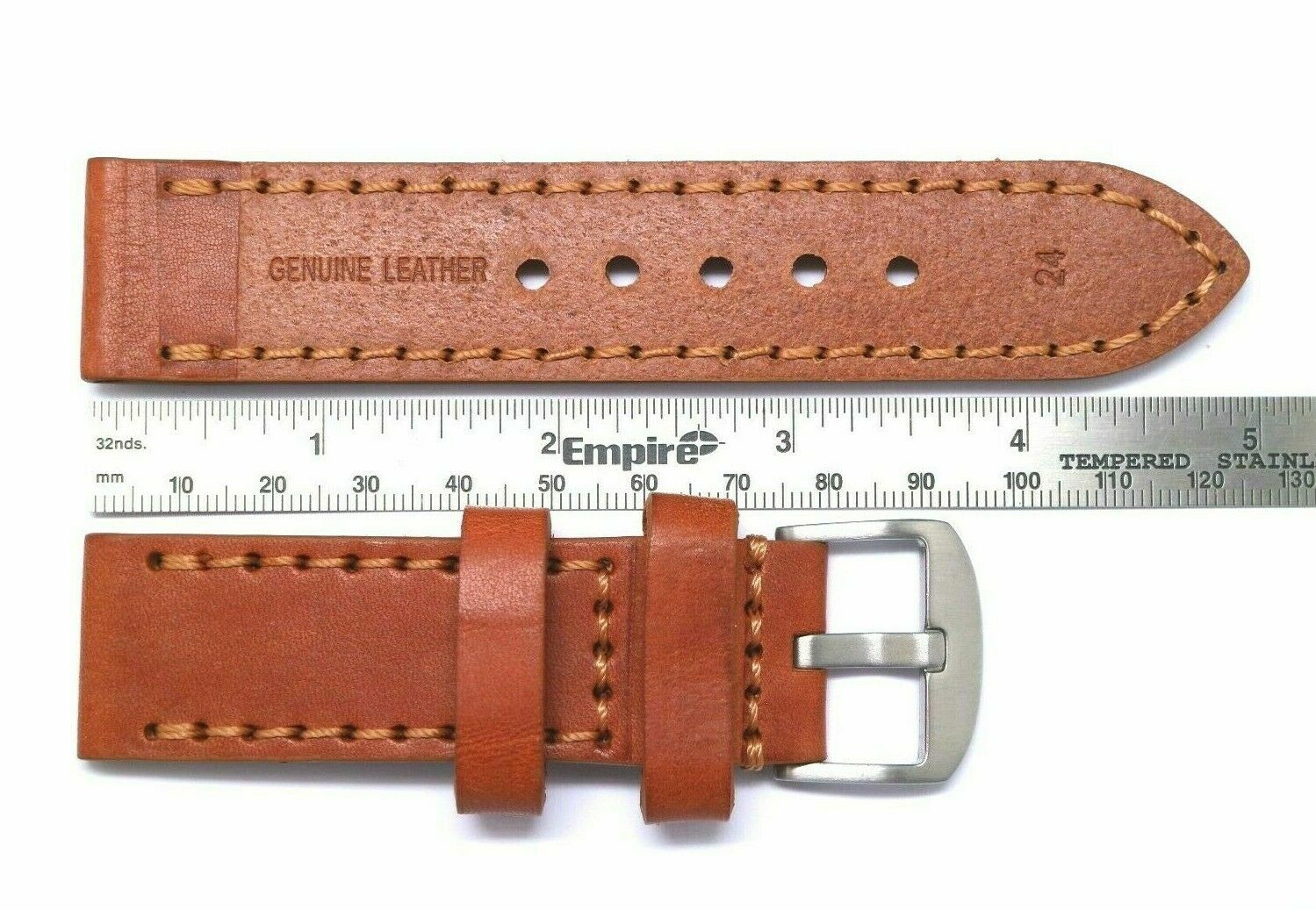 24mm Quality Orange Brown Genuine Leather Watch Band Stainless Matte Buckle
