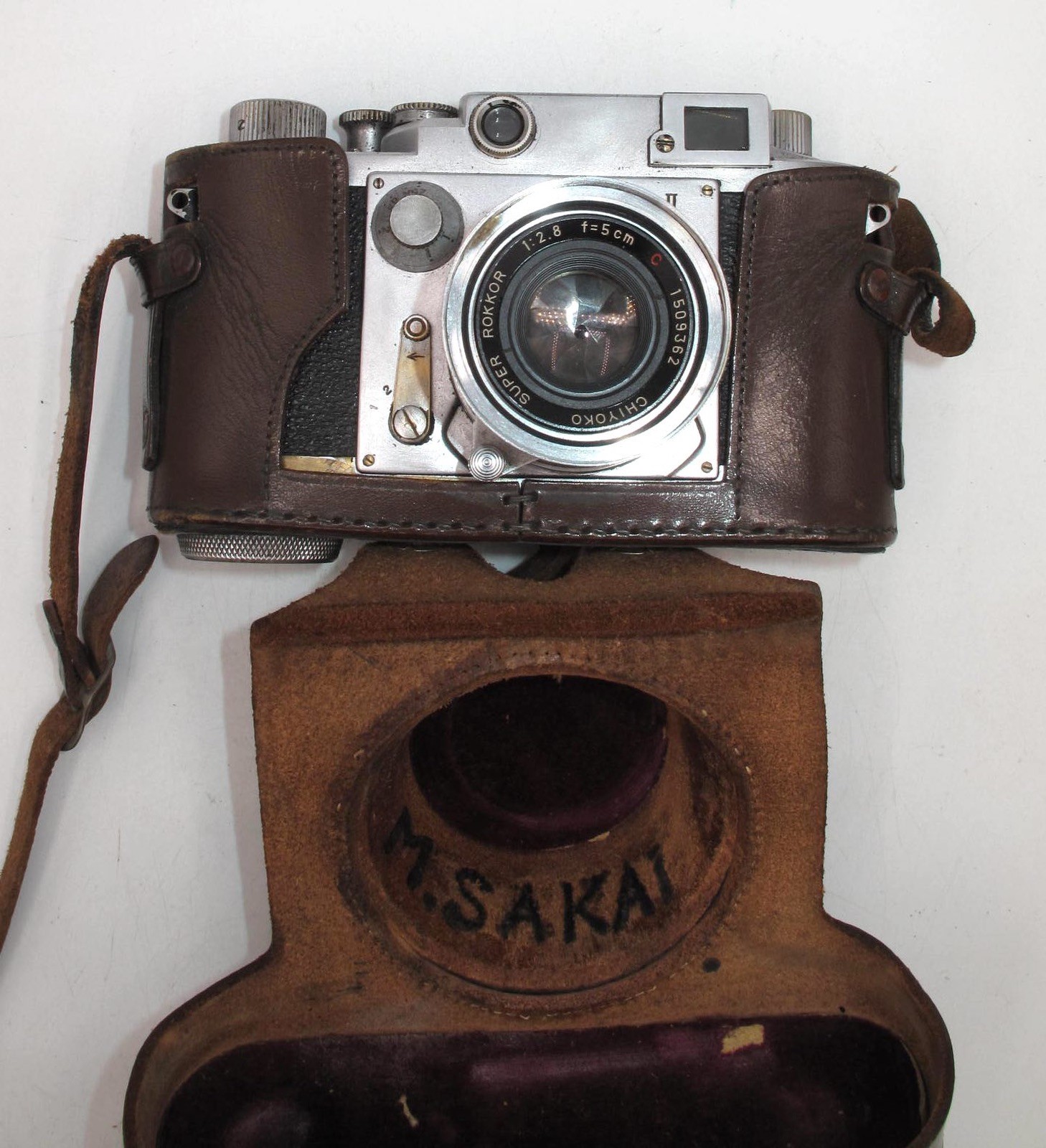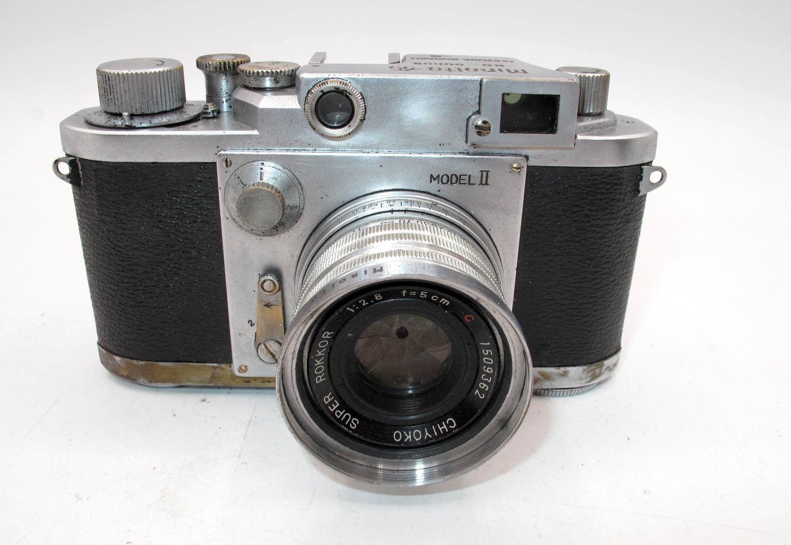 VINTAGE MINOLTA 35, MODEL II w/CHIYOKA SUPER ROKKOR 5cm F/2.8 LENS CASE-READ