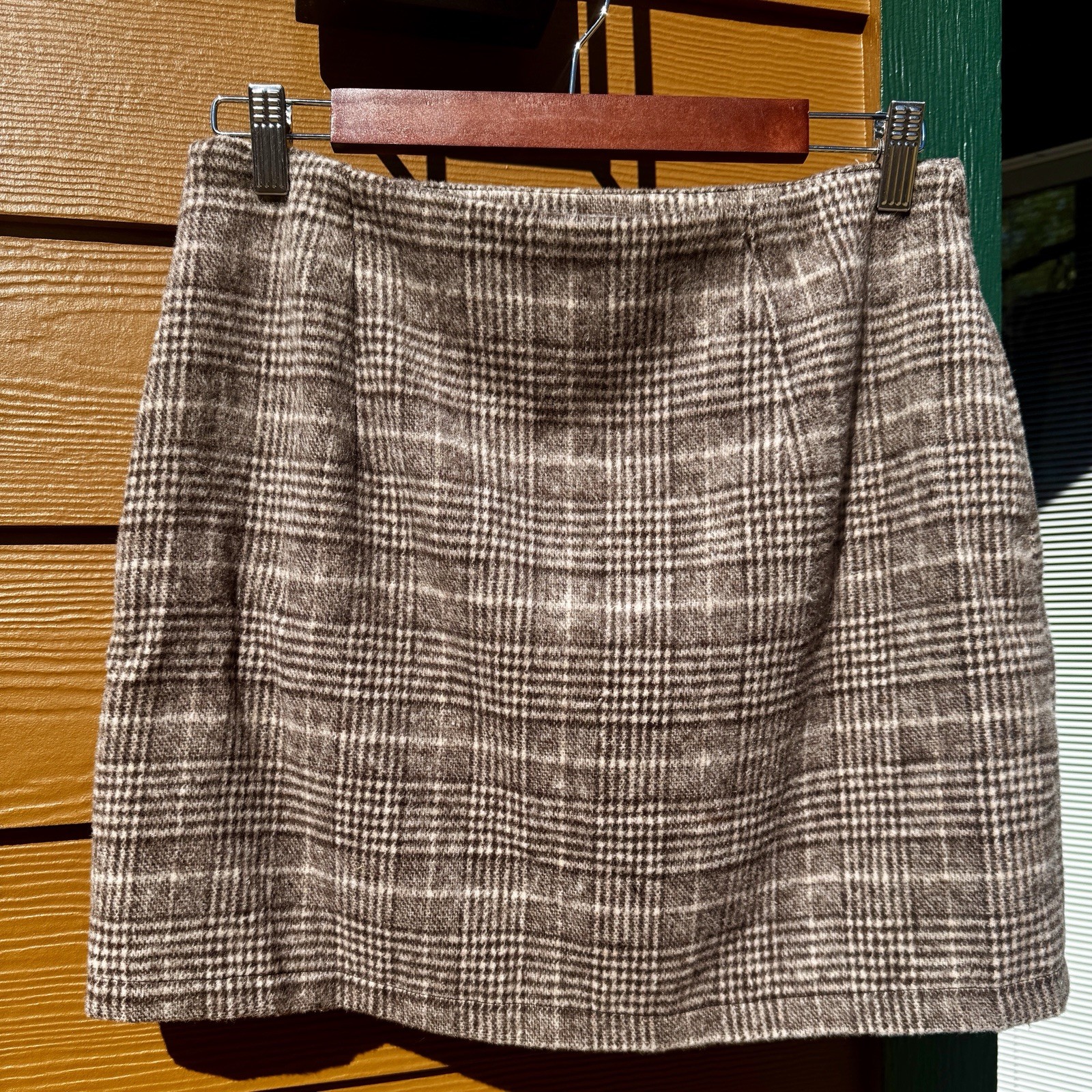 Women s Wool Blend Mini Skirt Plaid Clueless Side Zip Lined Preppy Academia Med