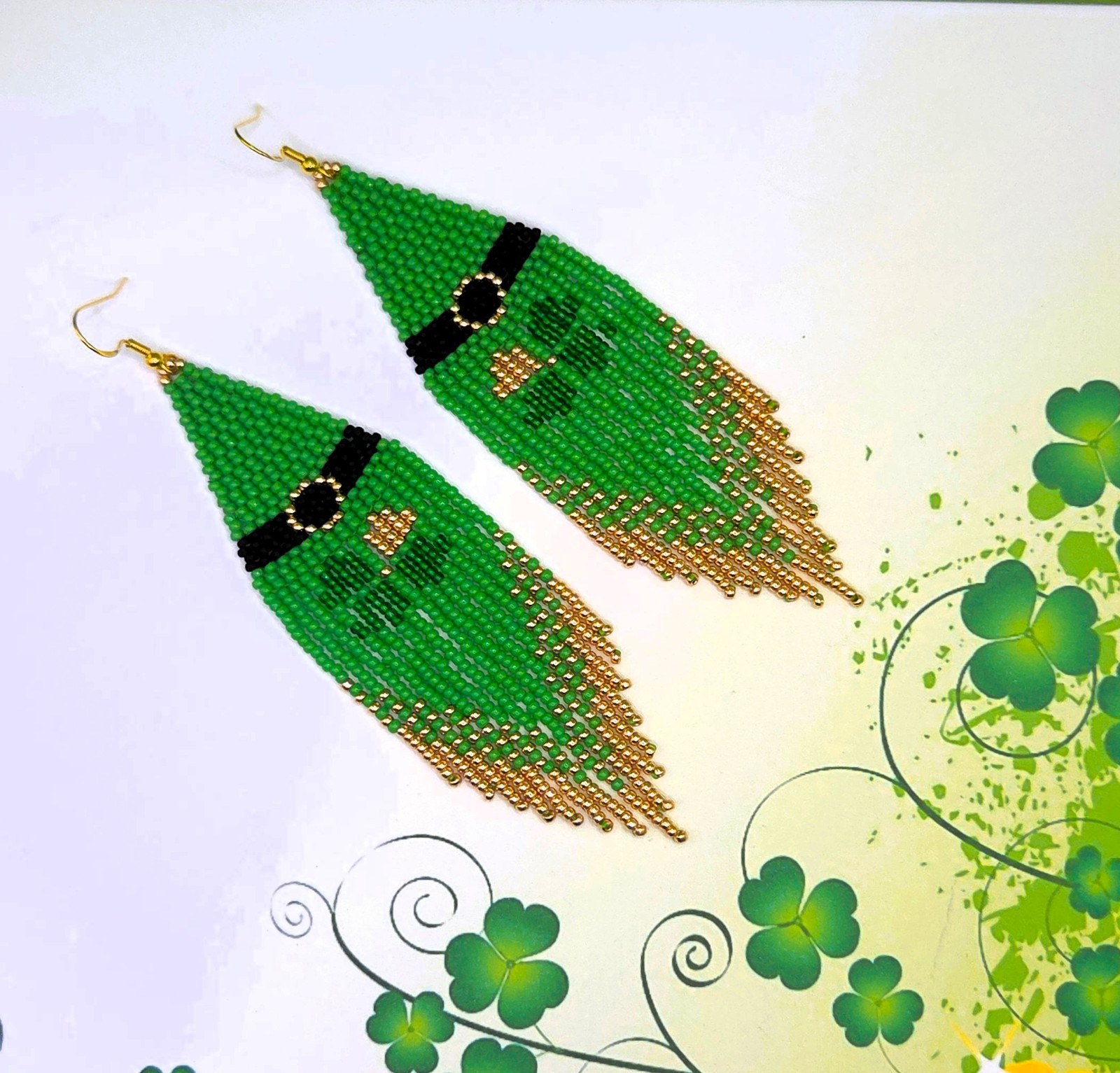 Handmade Beaded Earrings St Patrick's Day Green Shamrock Clover