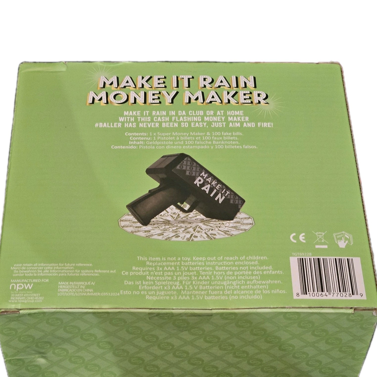 Make It Rain Money Maker Gun With Play Money Cash Party Gag Gift 100 Bills