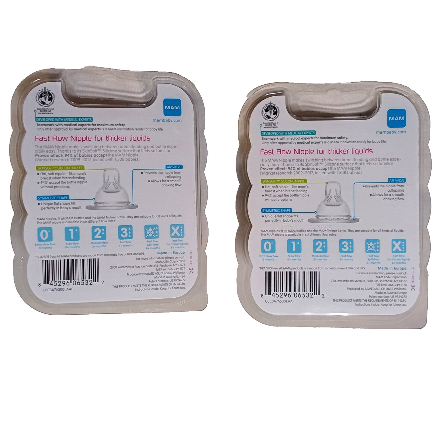 Lot of 2 MAM Extra Fast Flow Level 4 X Nipple 6 months 2-Pack for Thick Liquids