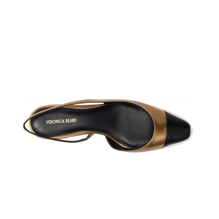NWD 375 Veronica Beard Women's Cecile Slingback Heels Black Dark Gold U.S. 7.5M