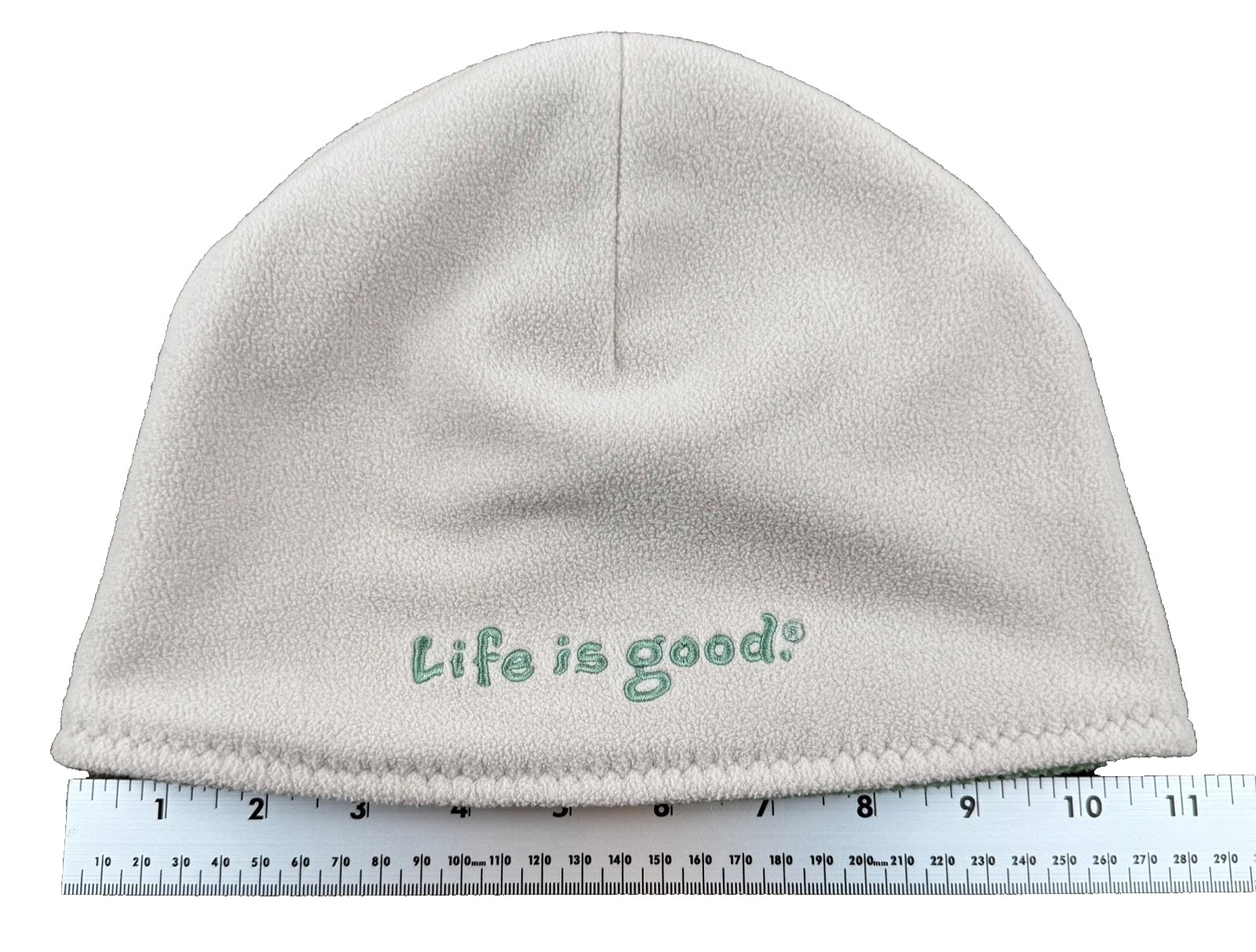 Life Is Good Reversible Beanie Hat Green Corduroy/Tan Fleece Unisex Adult