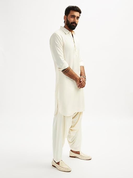Men s Traditional Pathani Kurta Pajama Set Cotton Ethnic Indian Wedding Wear