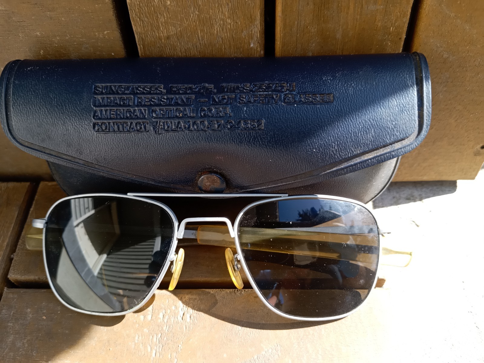 как выглядит American Optical Pilot Sunglasses Silver Metal Frame Gray Lens Contract DLA100- фото