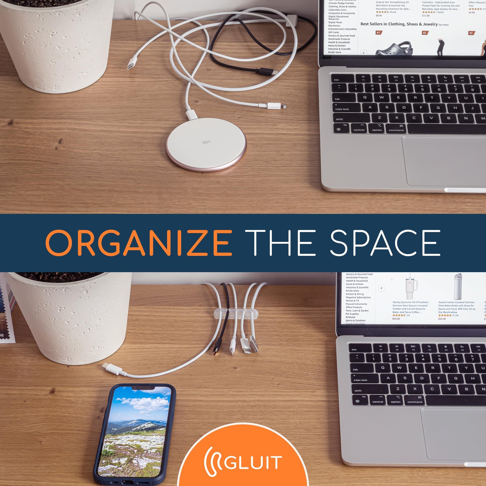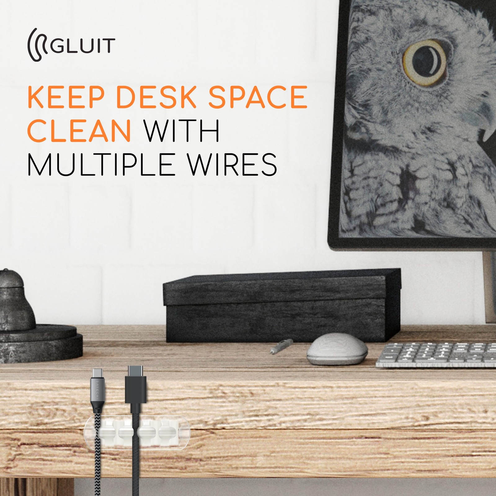 GLUIT Adhesive Desktop Cable Organizer Versatile Cord Holders Transparent
