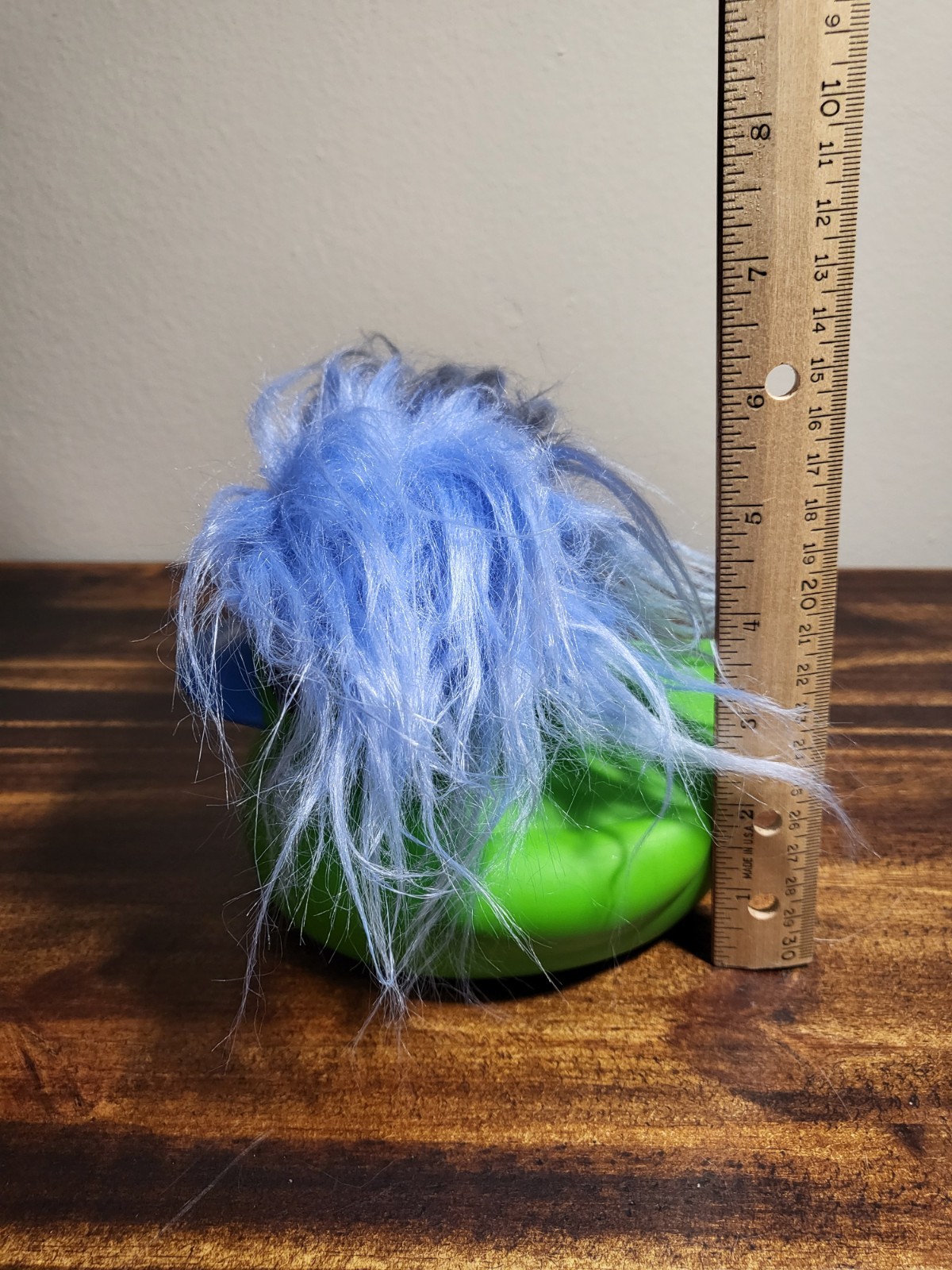 как выглядит Green and Blue 6" Rubber Duck With Stylish Blue Hair, Jeep, Pool фото
