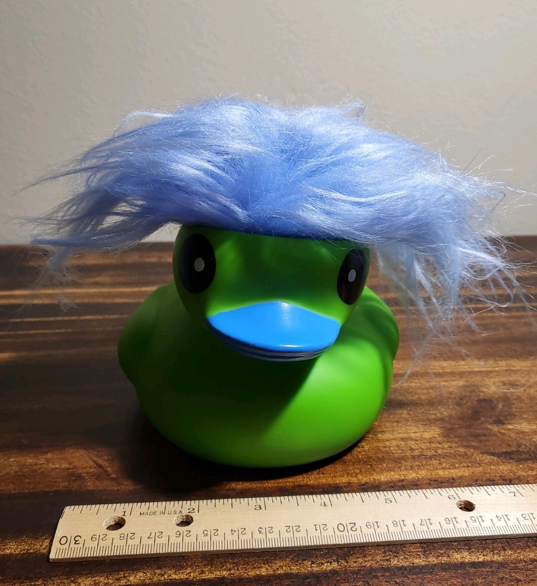 • Green and Blue 6" Rubber Duck With Stylish Blue Hair, Jeep, Pool
