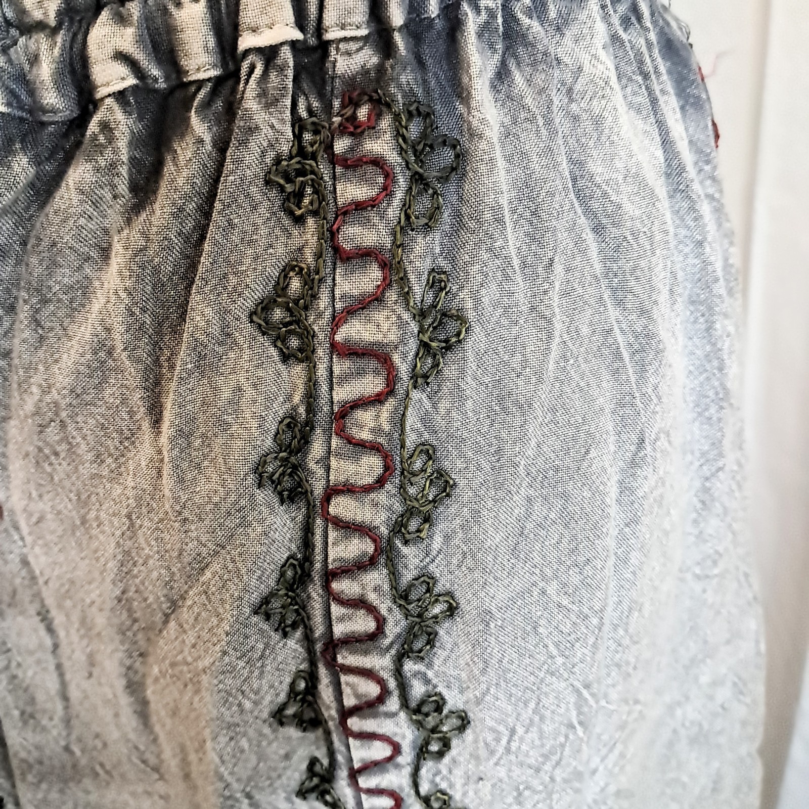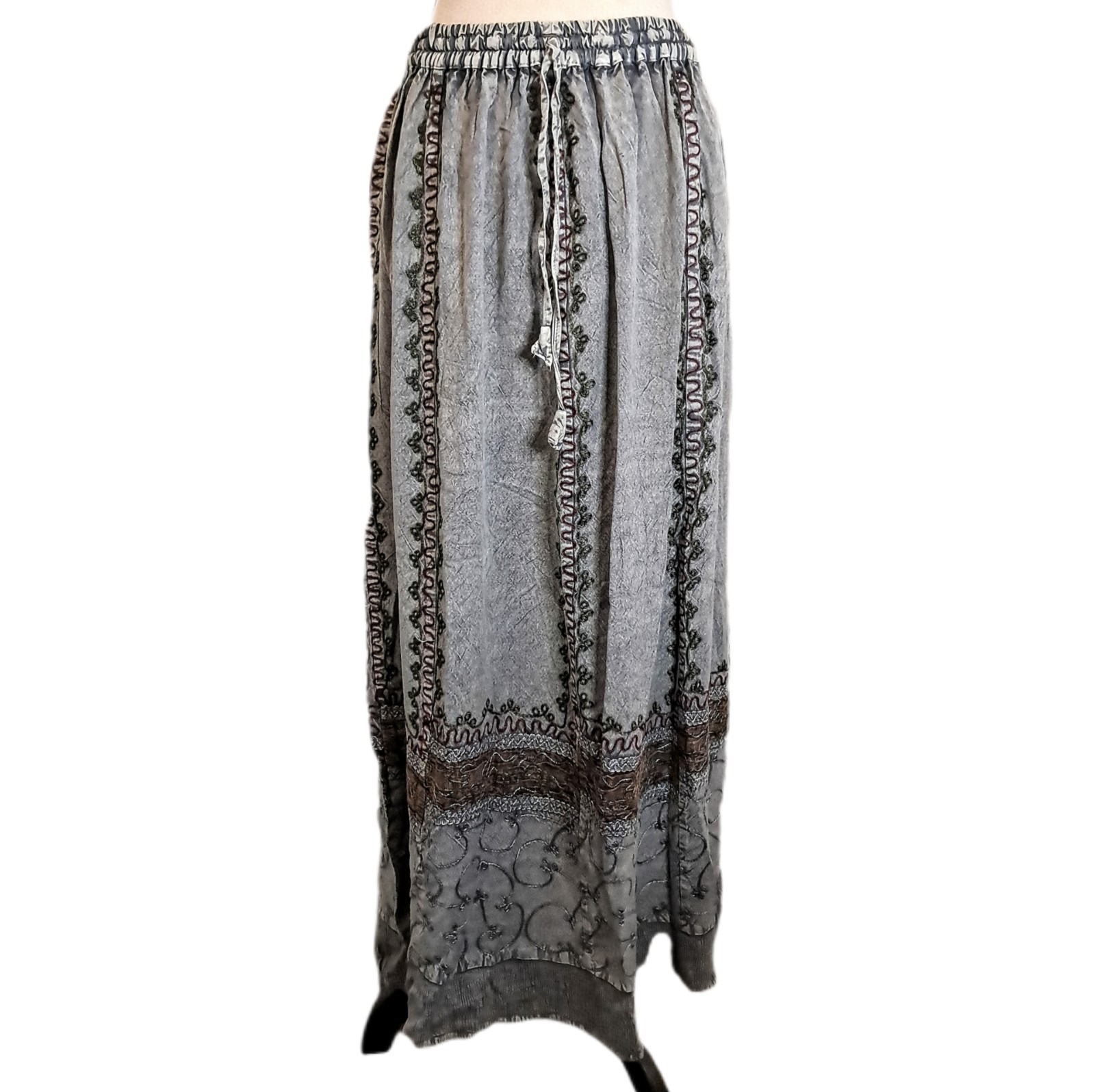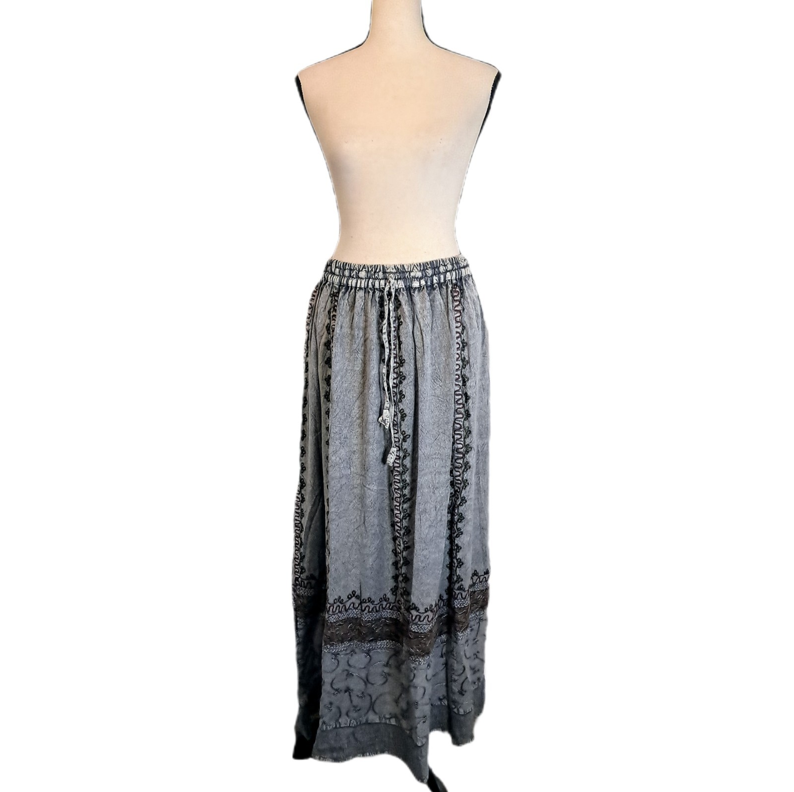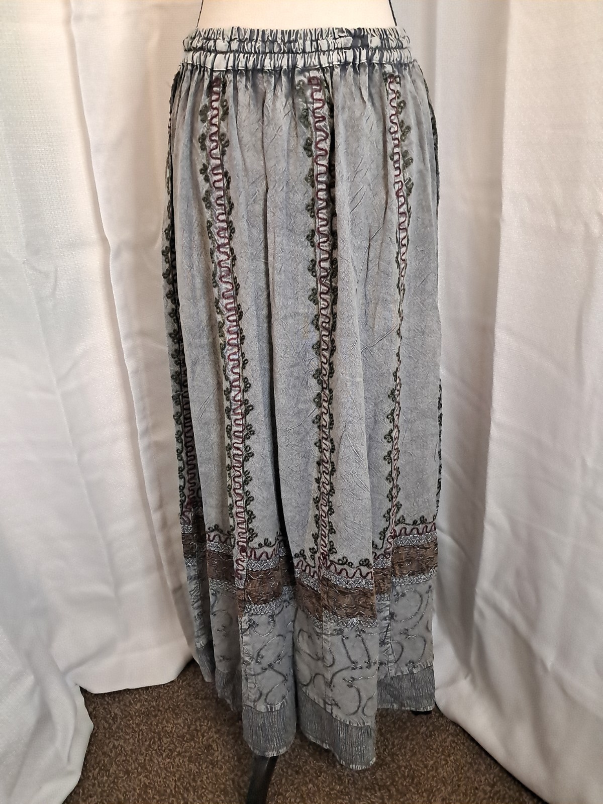 Purpura Gray Embroidered Boho Lagenlook Ethnic Festival Hippie Whimsy Skirt S/M