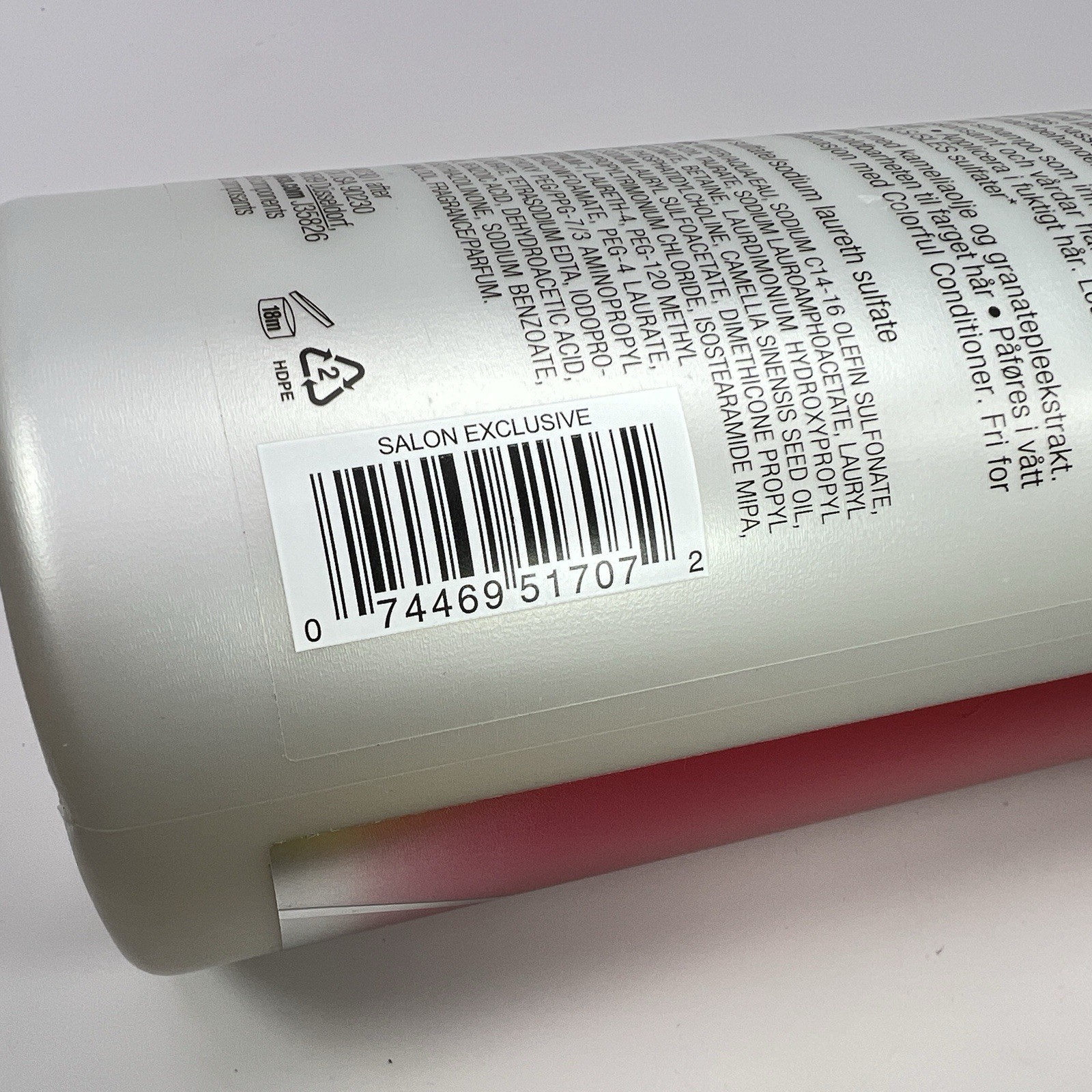 Active Ingredients: Water/Aqua/Eau, Sodium C14-16 Olefin Sulfonate, Cocamidopropyl Betaine, Sodium Methyl Cocoyl Taurate, Sodium Lauroamphoacetate, Lauryl Glucoside, Disodium Laureth Sulfosuccinate, Betaine, Laurdimonium Hydroxypropyl Hydrolyzed Keratin, Rosa Canina Fruit Oil, Phosphatidylcholine, Camellia Sinensis (Camellia) Seed Oil, Arginine HCl, Punica Granatum (Pomegranate) Extract, Sodium Lauryl Sulfoacetate, Dimethicone Propyl PG-Betaine, Glycol Distearate, Guar Hydroxypropyltrimonium Chloride, Isostearamide MIPA, Polyquaternium-47, Citric Acid, Polyquaternium-7, Laureth-4, PEG-120 Methyl Glucose Dioleate, Dimethicone PEG-8 Meadowfoamate, PEG-4 Laurate, Quaternium-80, Methyl Gluceth-10, Methoxy PEG/PPG-7/3 Aminopropyl Dimethicone, Propylene Glycol