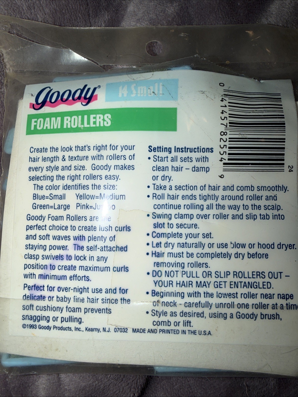 Vintage Goody Small Foam Hair Rollers 14 Model 82554 Made USA