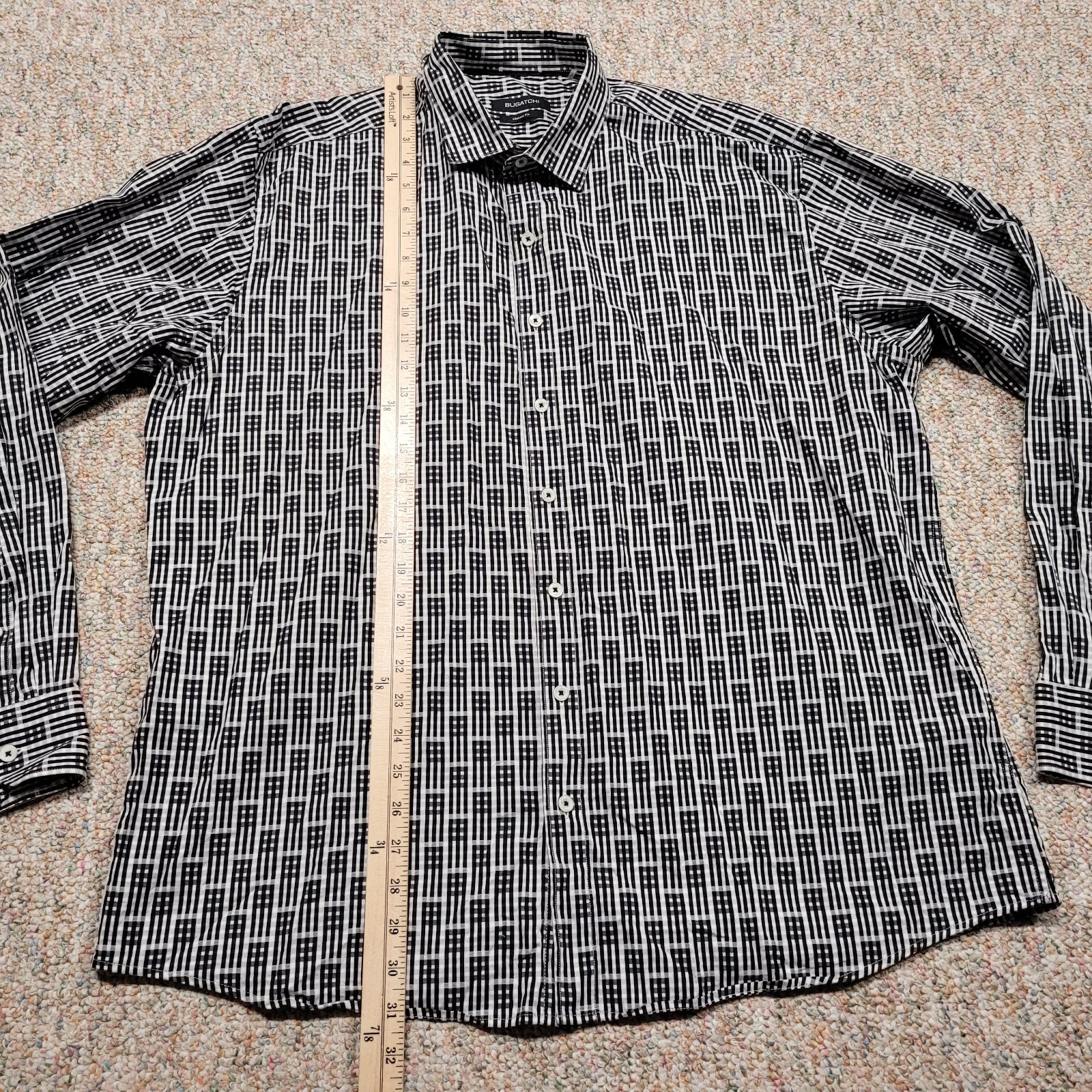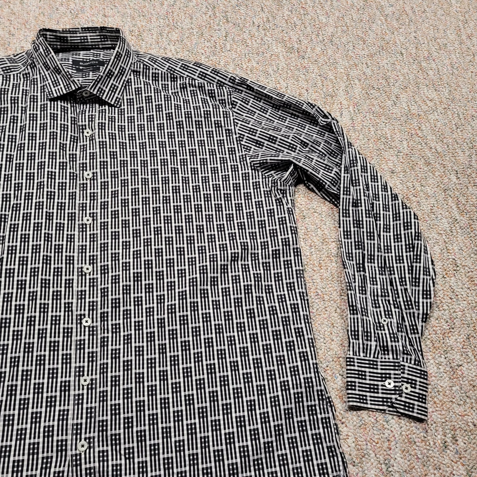 как выглядит Bugatchi Shirt Mens XL Geometric Abstract Button Up Long Sleeve Classic Fit Prep фото