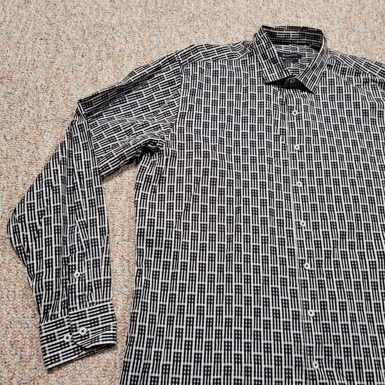 Bugatchi Shirt Mens XL Geometric Abstract Button Up Long Sleeve Classic Fit Prep