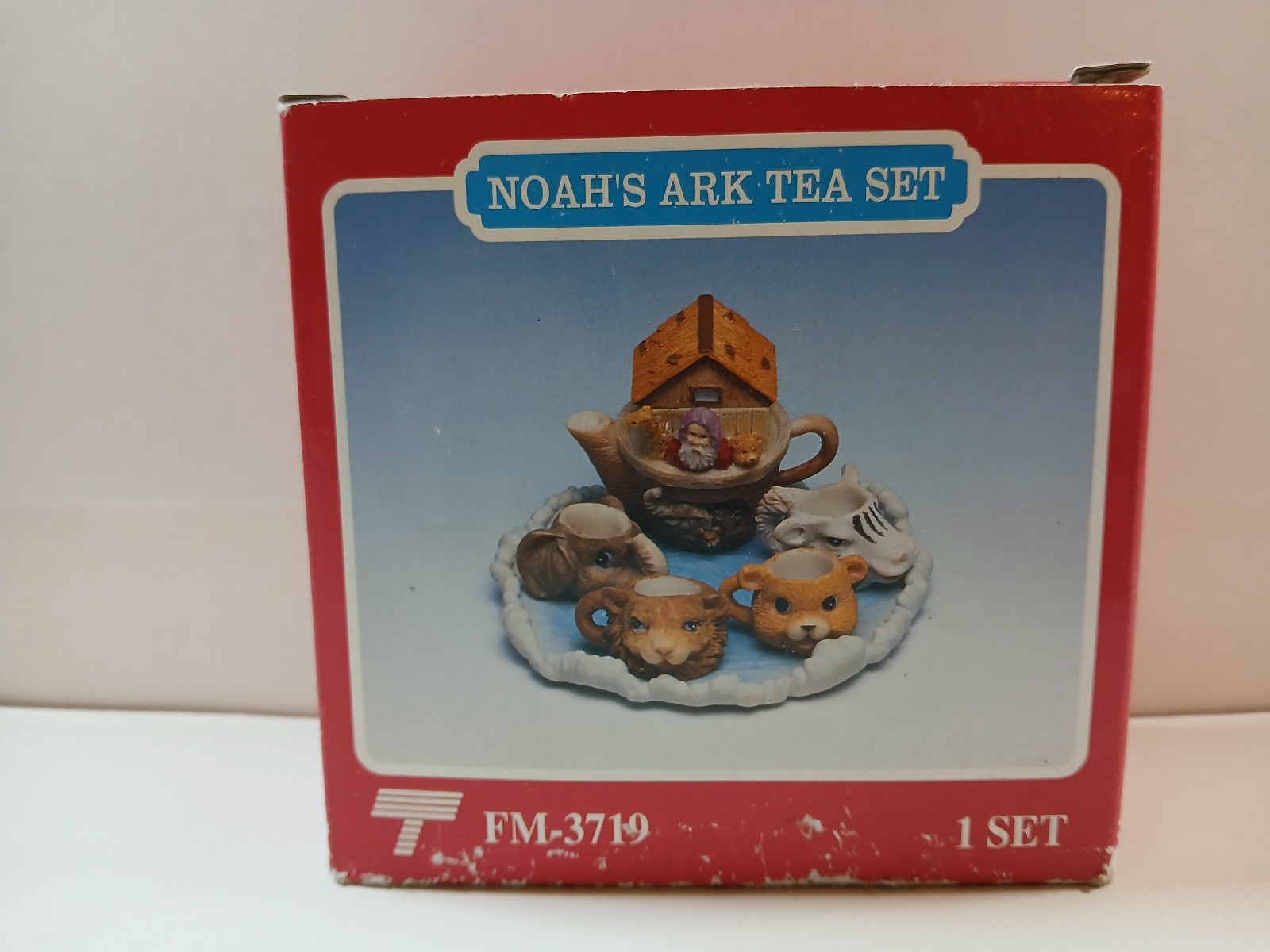 • Miniature 2" Noah's Ark Tea Set 4 Cups Tea Pot Serving Tray in Original Box
