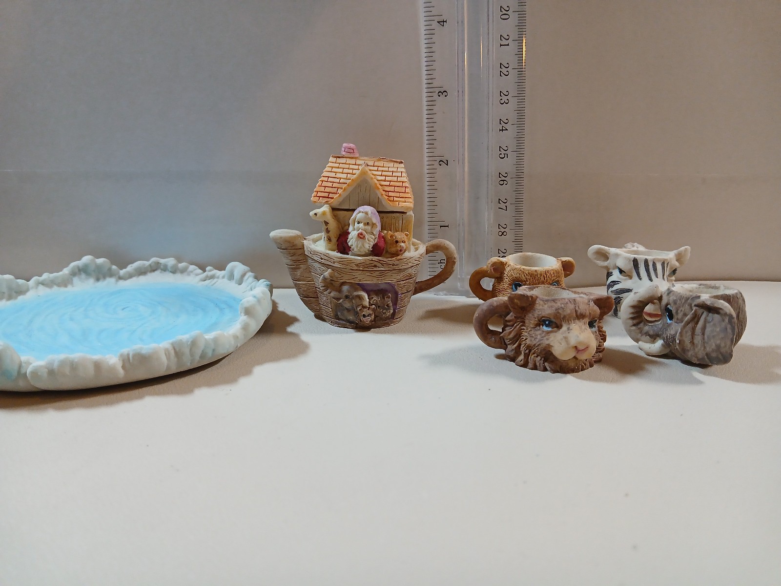 как выглядит Miniature 2" Noahs Ark Tea Set 4 Cups Tea Pot Serving Tray in Original Box фото