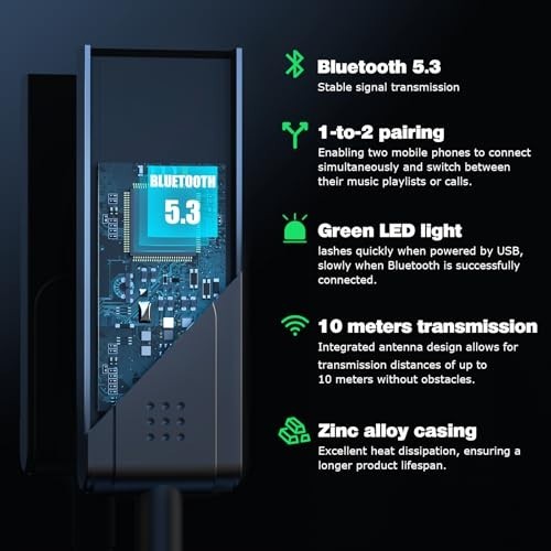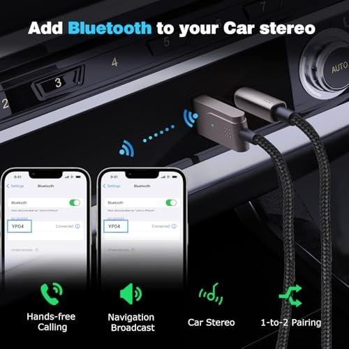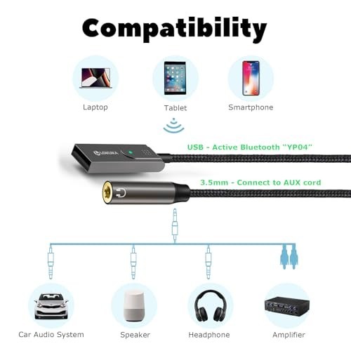 Bluetooth 5.3 Aux Adapter for Car Amp, USB to 3.5mm Receiver, Hands-Free Music