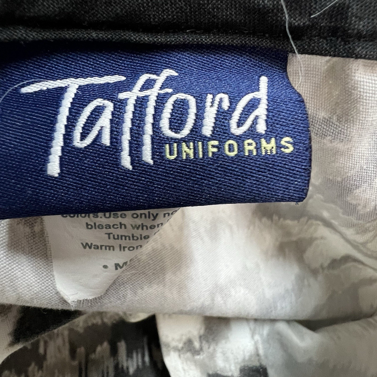 Tafford Scrub Top Medium Black Gray Abstract Print V Neck Nurse