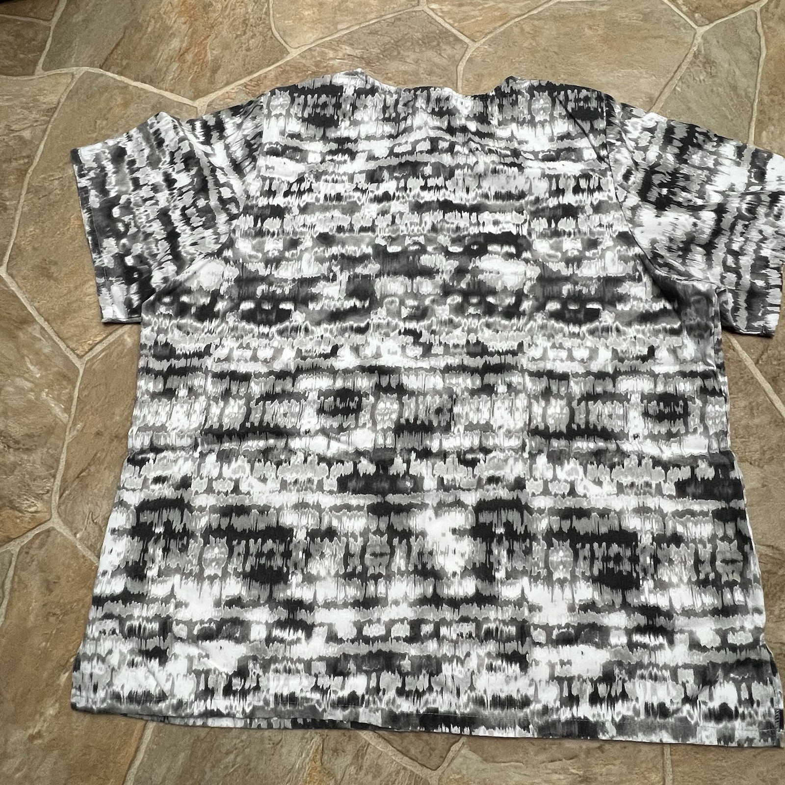 как выглядит Tafford Scrub Top Medium Black Gray Abstract Print V Neck Nurse фото