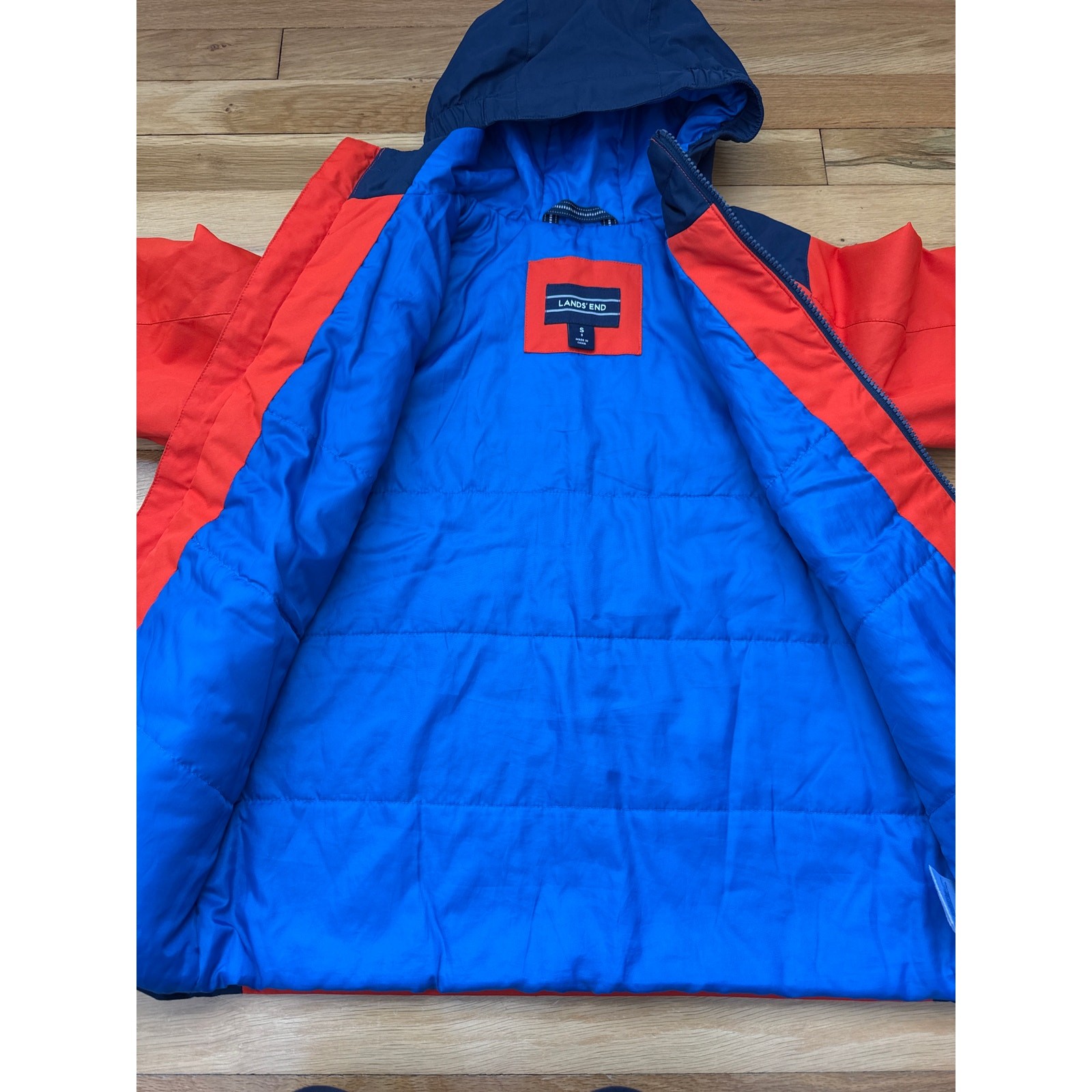 как выглядит Lands End Hooded Insulated Jacket Coat Orange Blue Outerwear Boys Small 8 фото